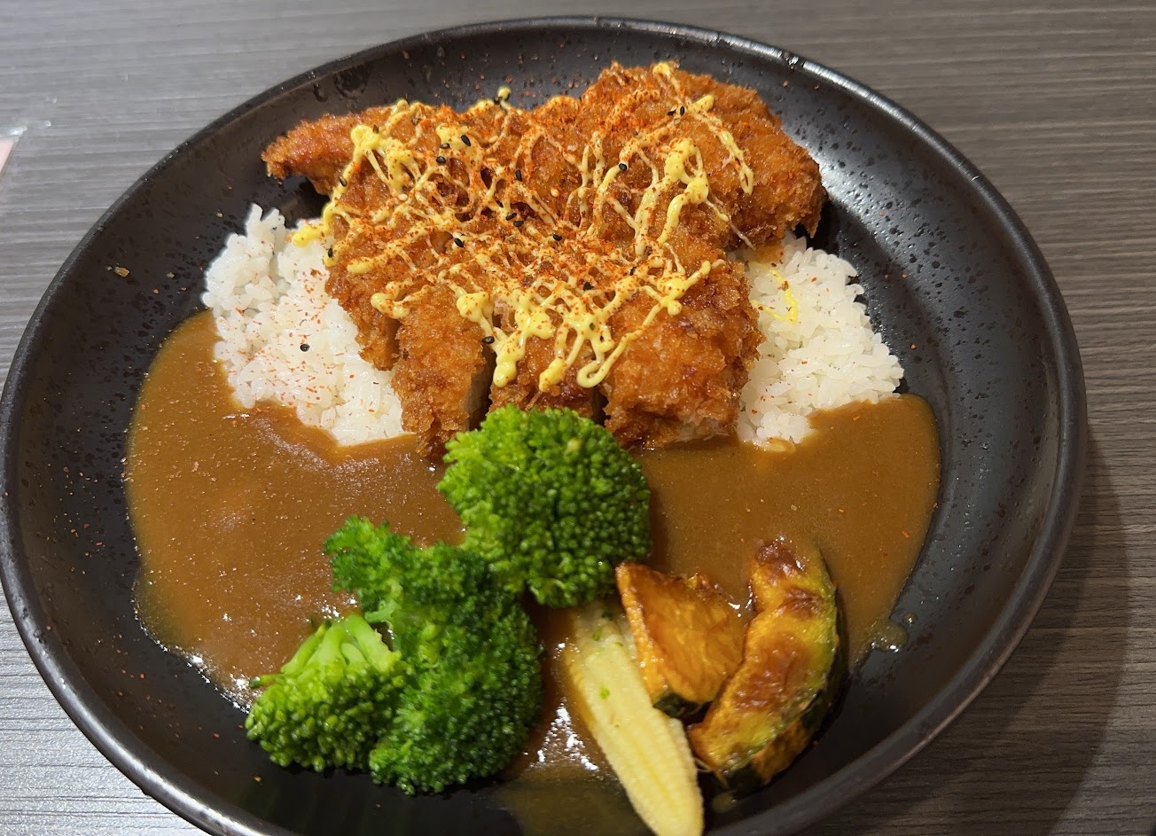 炸豬排厚實不硬柴,和炸蝦的麵衣都炸得酥脆,口感很讚;咖哩醬不錯不會過稀,白醬沒什麼存在感,但怕咖哩吃太膩點雙醬輪流吃是滿好的選擇;胡麻花椰菜份量滿多的,不知道咖哩飯本身就有花椰菜,差點吃不完?