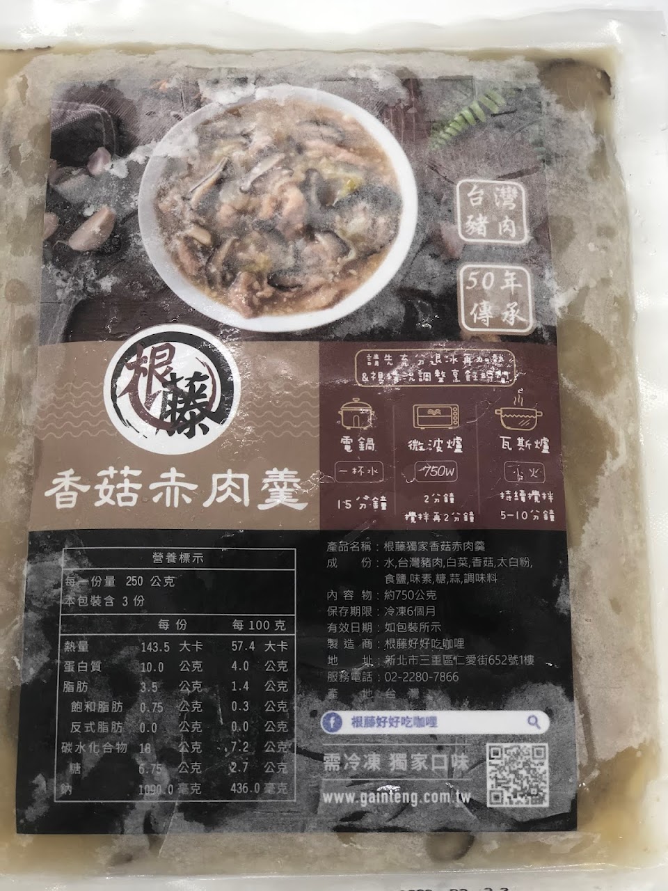 只要將調理包退冰後,使用電鍋加半杯水
