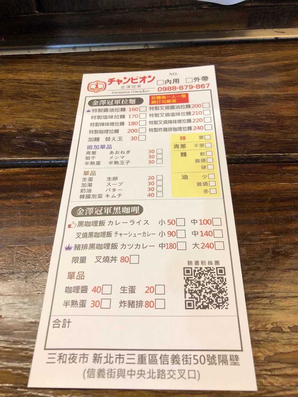 在三和夜市的路邊攤,標榜賣日式拉麵與咖哩飯,常常經過生意很好,今天終於停下來買一個豬排黑咖哩飯回家吃,因為我在大阪吃過黑咖哩那個口味我回台一直念念不忘,日本的黑是真的黑,而這裡的只是深咖啡色,口味的表現上已經不一樣,另外咖哩的靈魂–米飯,也是很一般的米飯,與咖哩無法結合,而主角豬排的肉有厚度但沒有炸出酥脆口感,在這樣的環境下定價似乎是偏高了,也許下次再給拉麵一次機會看看。 服務 外帶 餐點類型 晚餐 平均每人消費金額 $200-400 餐點:3 服務:4 氣氛:4