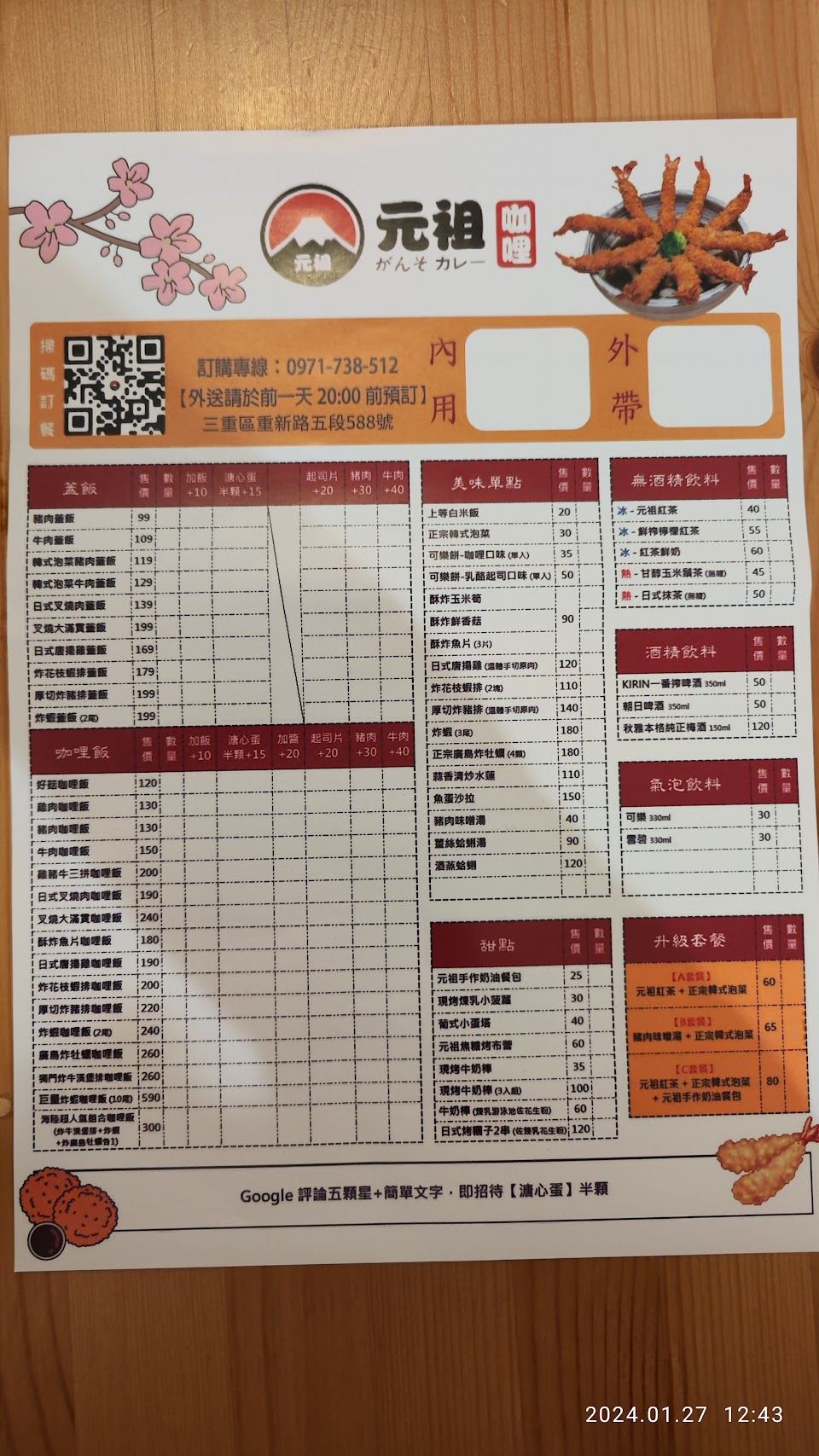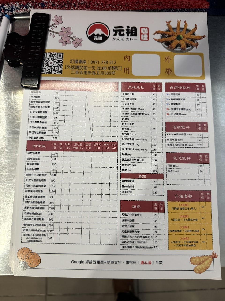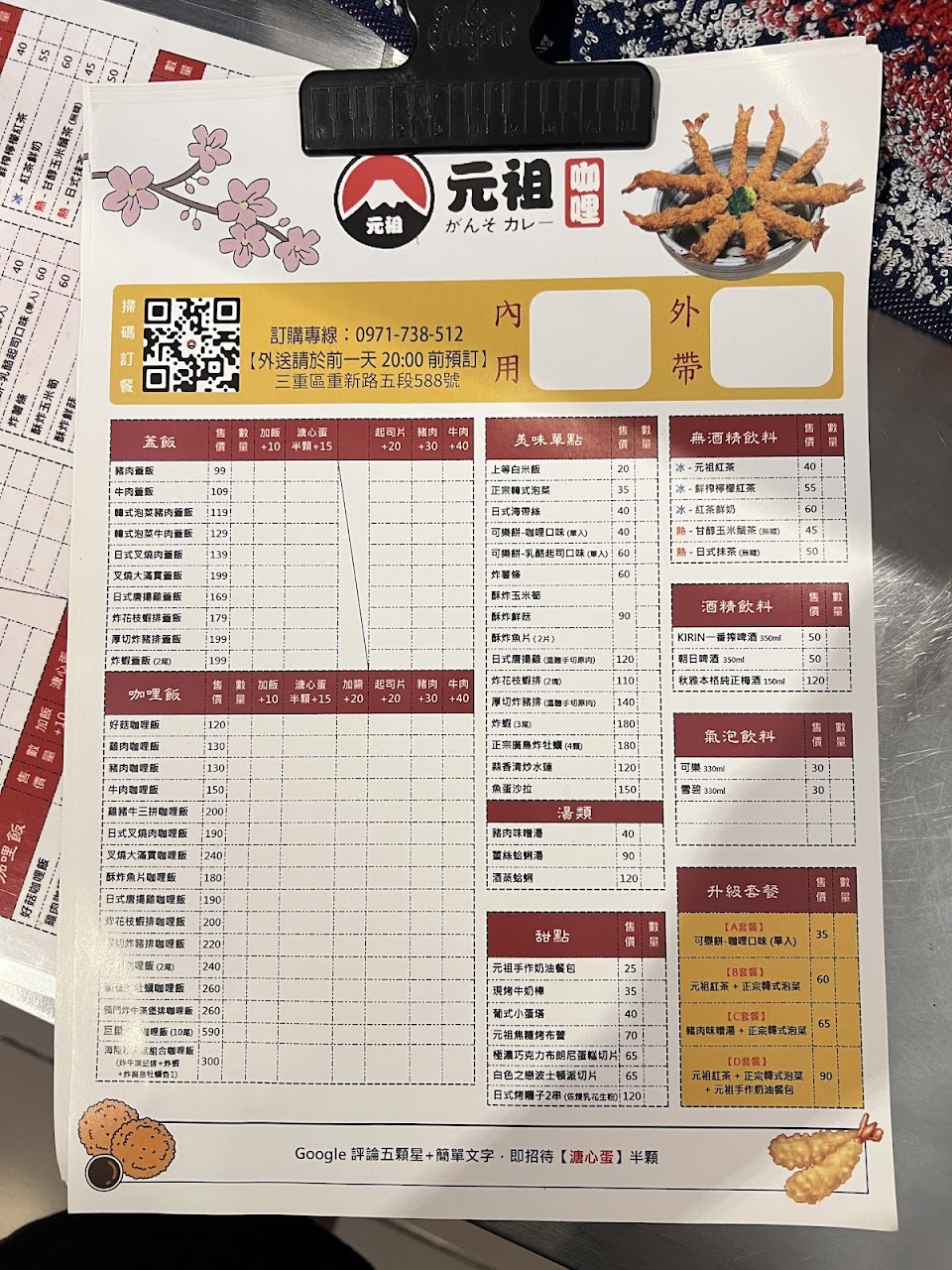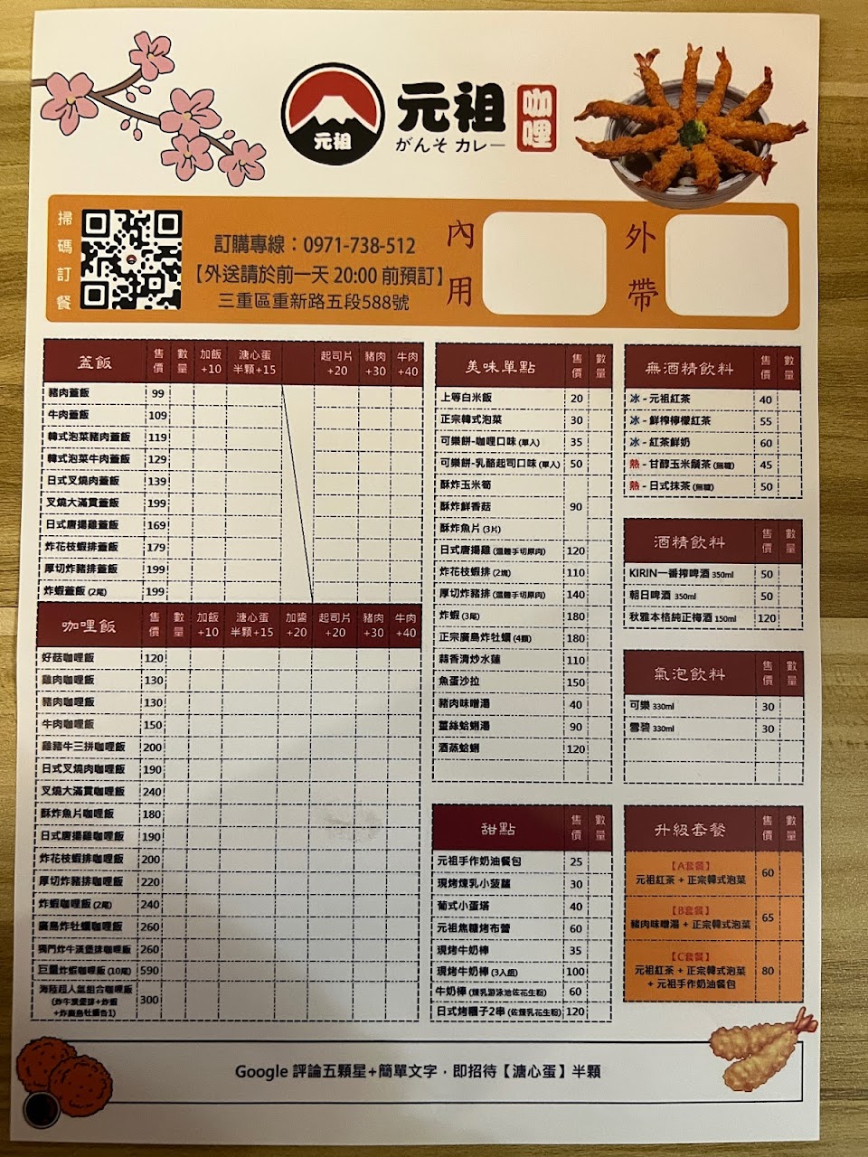 2024最新在地推薦餐廳的菜單_元祖咖哩 l 炸豬排 l 炸花枝蝦排 l 烤布蕾 l 飲料 l 下午茶 l 湯城園區 l 先嗇宮站美食的菜單、圖片