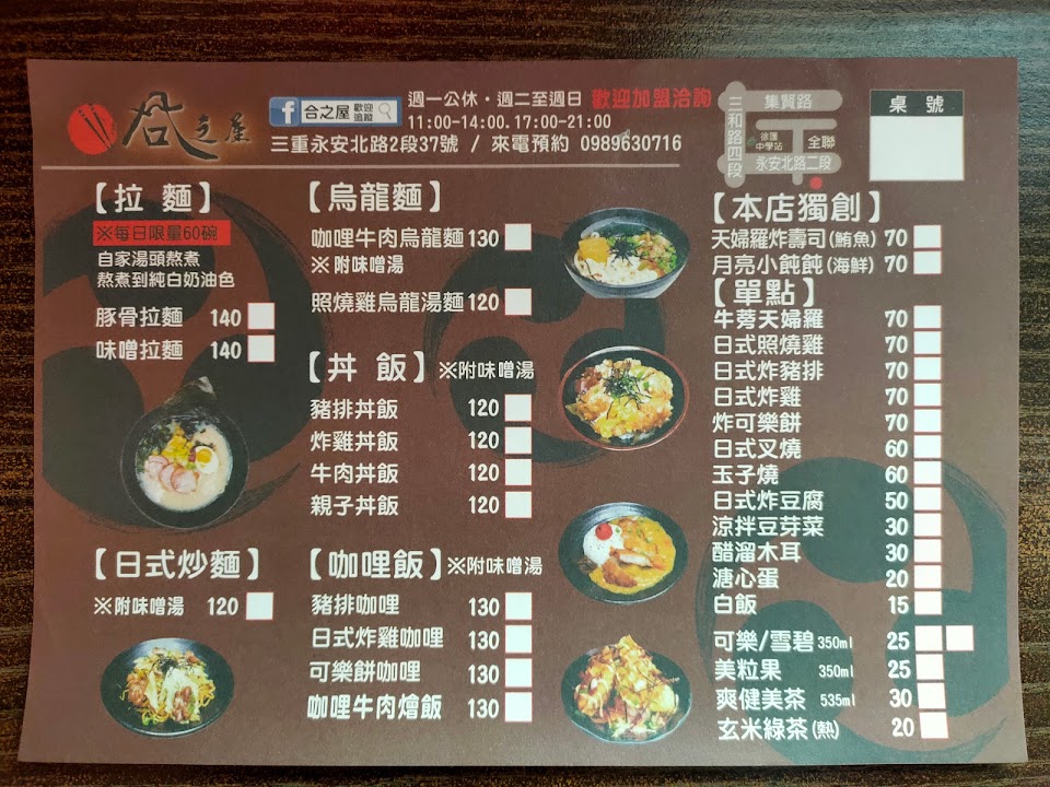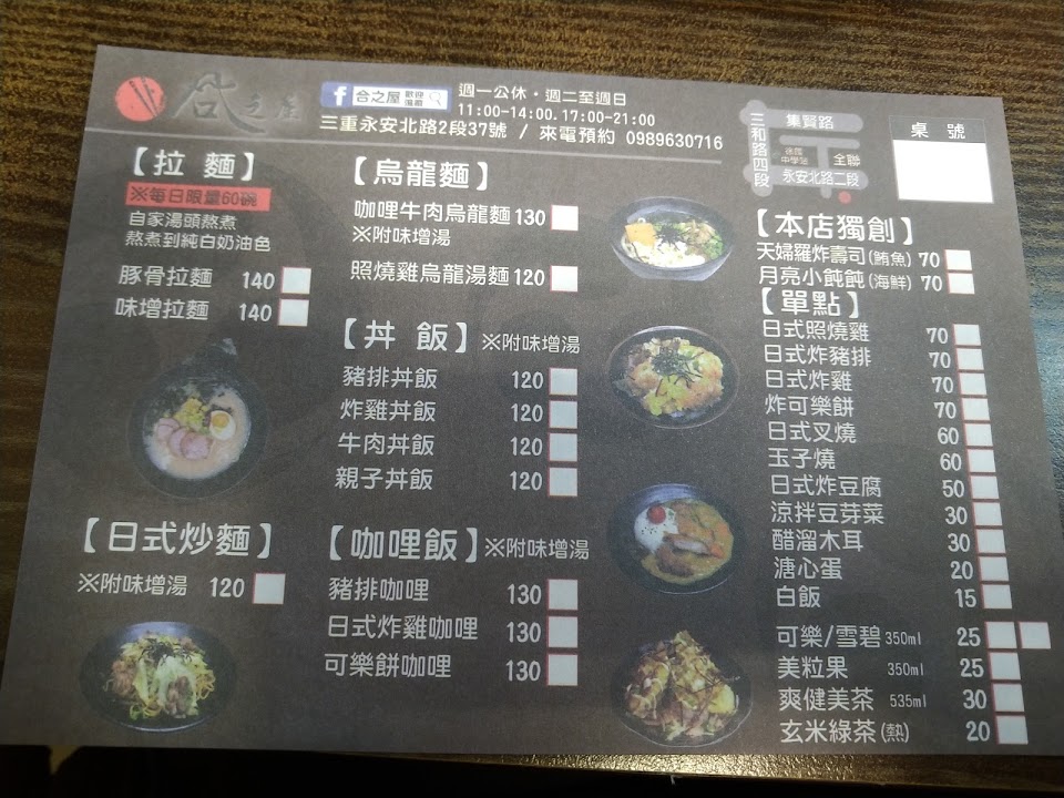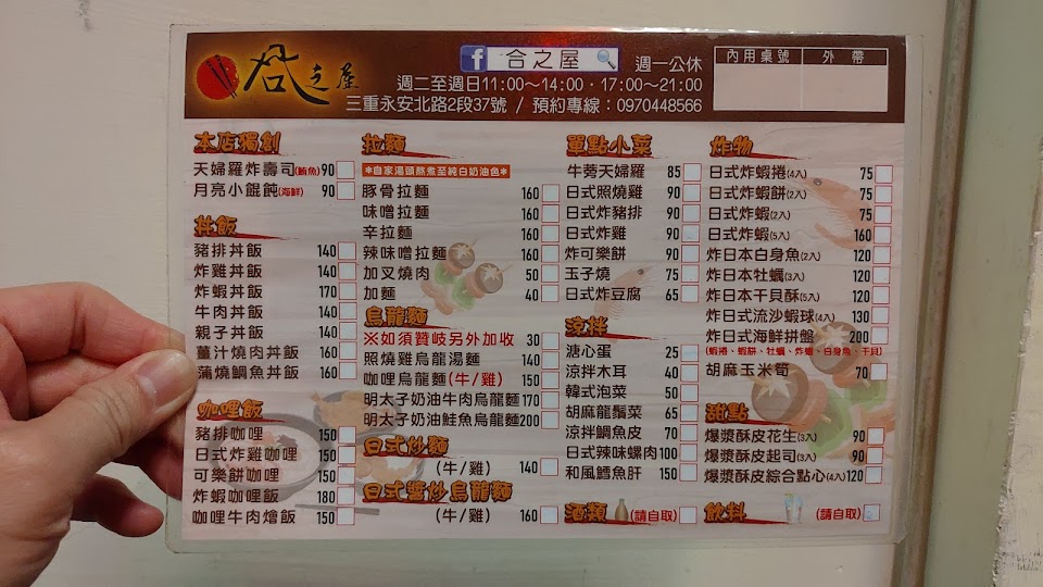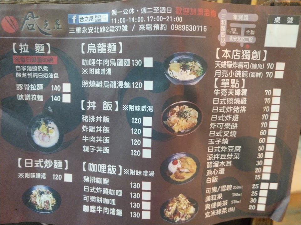 2024最新在地推薦餐廳的菜單_合之屋-三重美食-拉麵-丼飯-餐廳-咖哩飯-烏龍麵的菜單、圖片