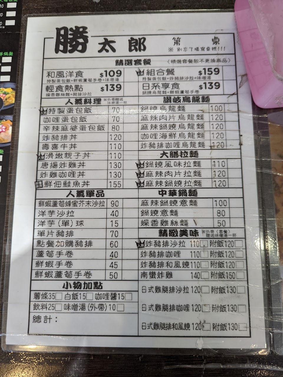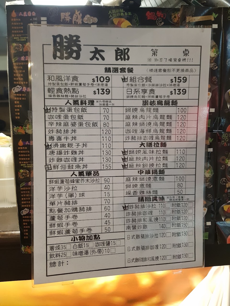 2024最新在地推薦餐廳的菜單_勝太郎日式蛋包飯專賣-三民店的菜單、圖片