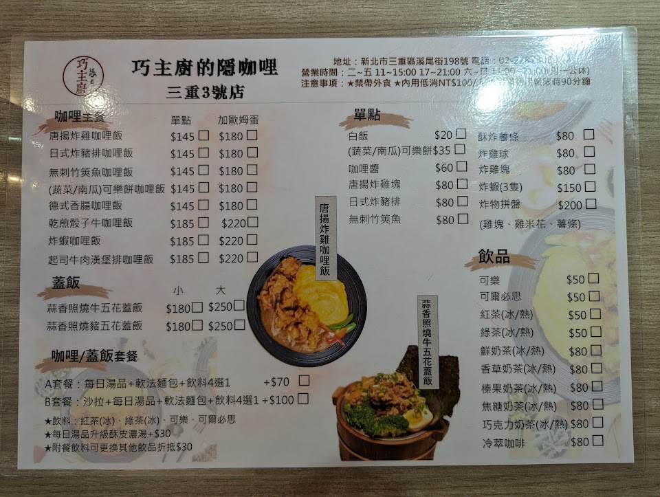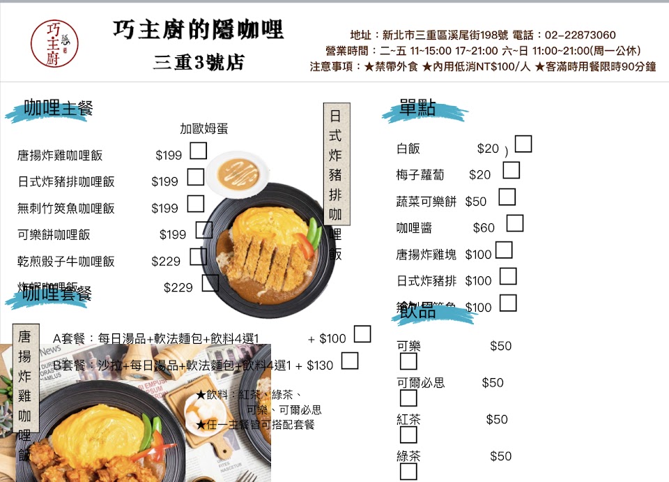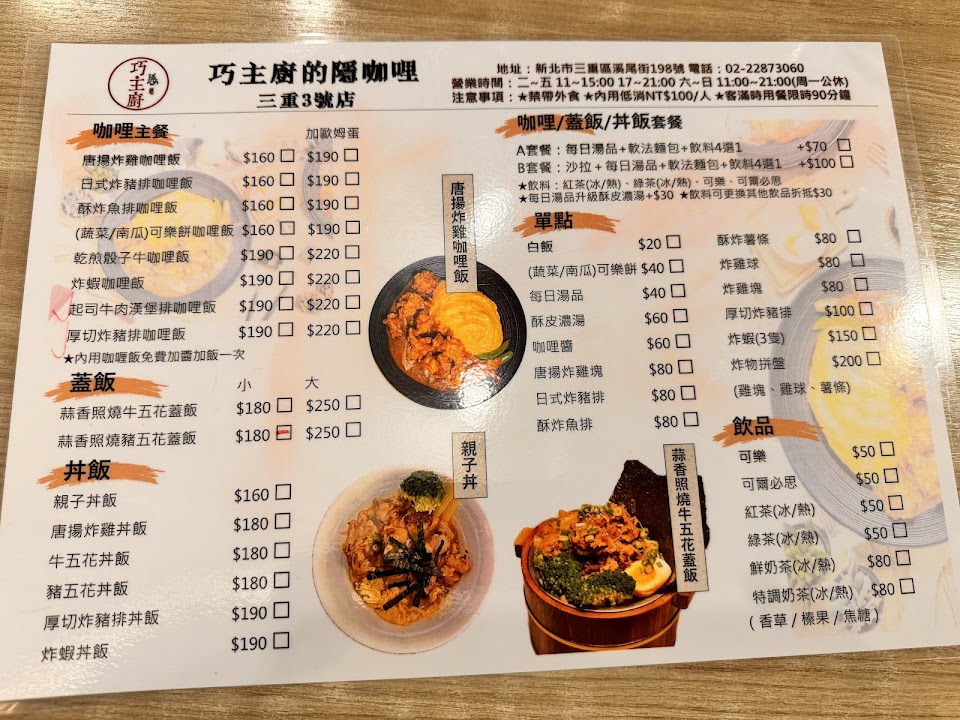 2024最新在地推薦餐廳的菜單_巧主廚的隱咖哩三重3店三重蘆洲必吃咖哩飯/人氣咖哩/外帶咖哩/CP值超高的菜單、圖片