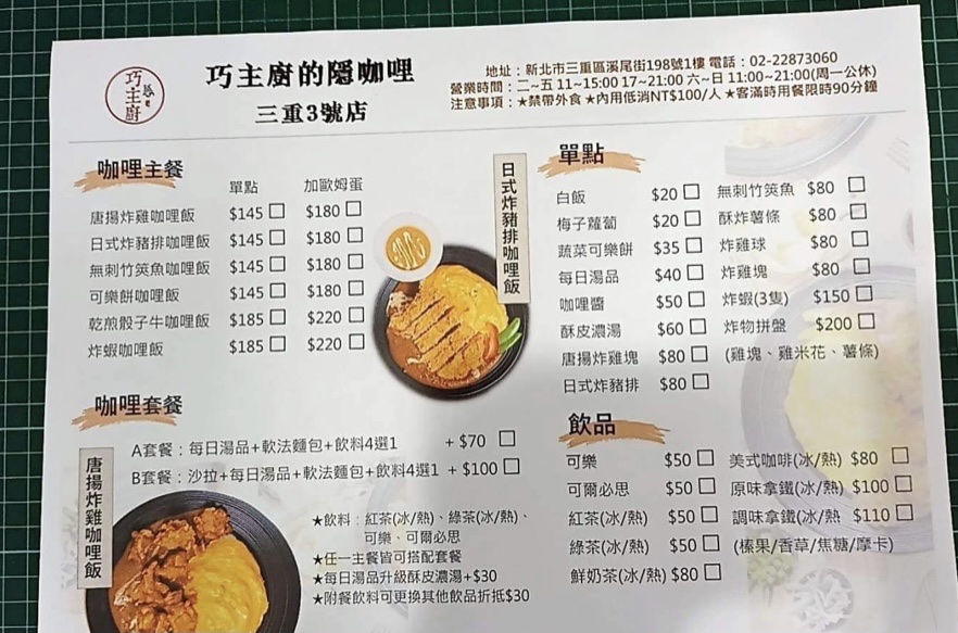 巧主廚的隱咖哩三重3店三重蘆洲必吃咖哩飯/人氣咖哩/外帶咖哩/CP值超高