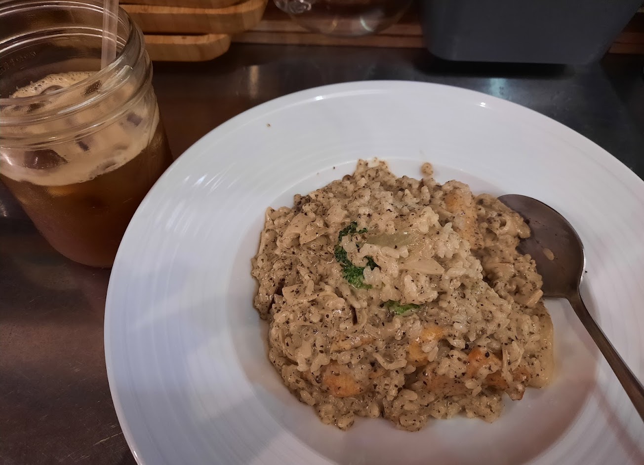 青醬海鮮麵非常濃郁,蛤蜊超大顆,咖啡香氣十足,CP值非常高,推~~~~