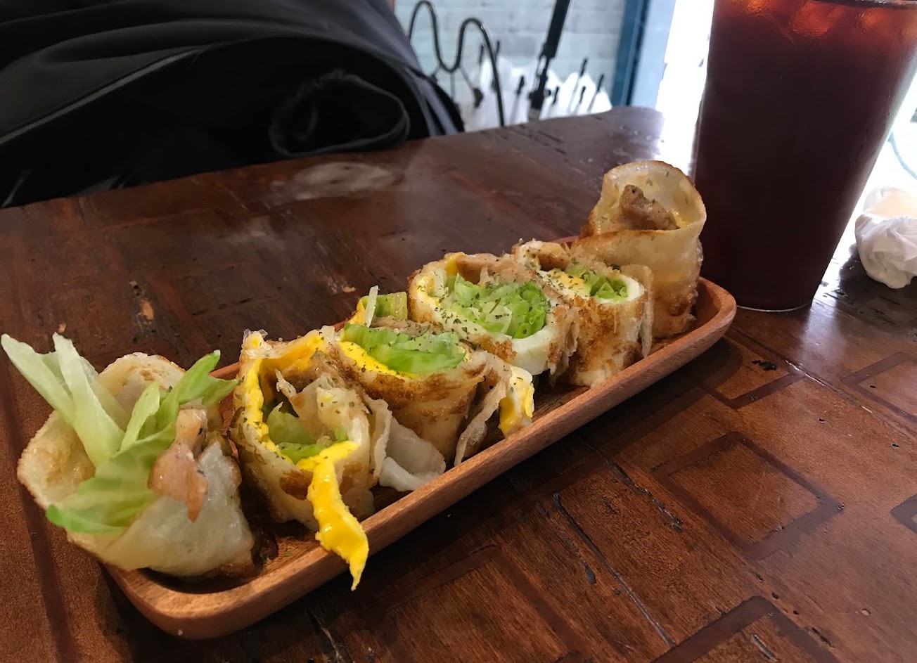 隱藏巷弄的早午餐。空間佈置溫馨,擺盤用心。肉鬆花生蛋餅捲、炸蘿蔔糕挺有特色的。紅茶、綠茶,都算是好喝的。