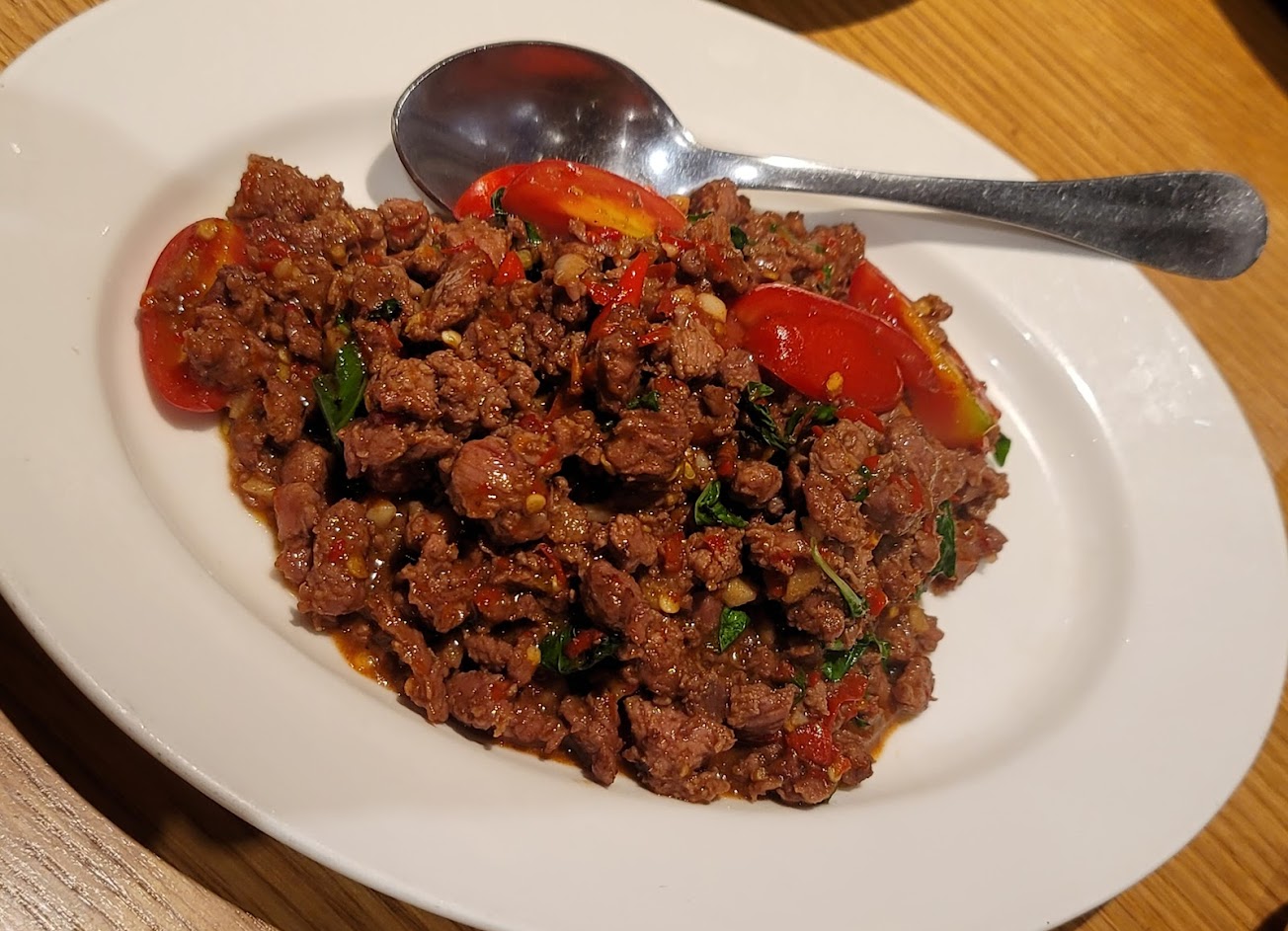 餐點口味符合連鎖品質。四人去吃7:30進場,8點10分左右六道菜上完不久,我們想要第一次續飯(第一次飯量只夠一人一碗),服務生隨即告知沒有飯了,且無法再煮,但我們還有幾乎七成菜還沒吃,事後問了三次後才說可補償換河粉或不算白飯錢。最後結帳換管理階層人員告知可折抵一道菜跟白飯與服務費! 建議一開始就先說清楚補償方案並控管好白飯量,大部分人應該很難單吃這些重口味的泰式菜不配飯或其他麵類!