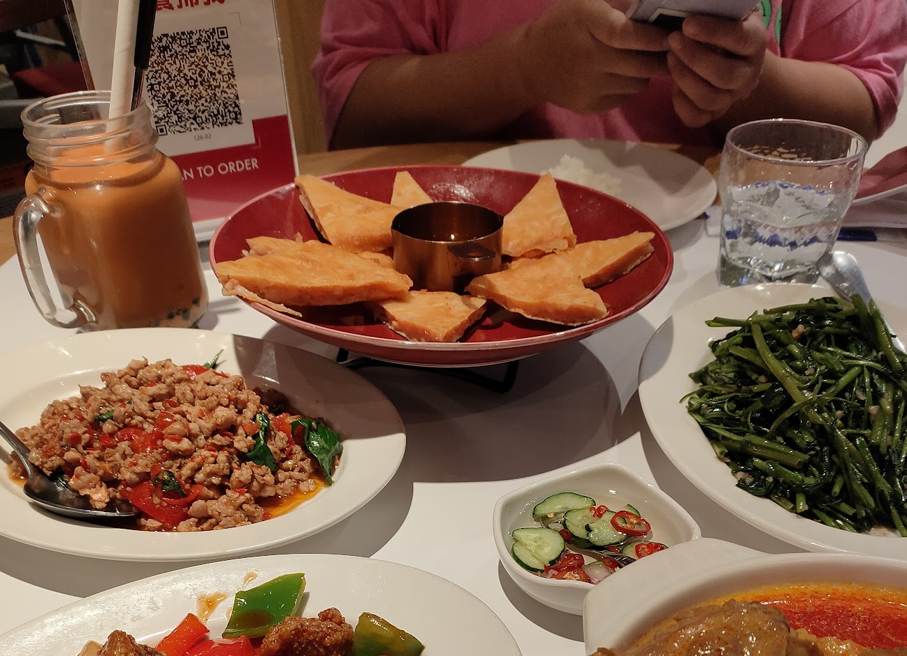蝦餅熱熱吃很好吃。綠咖哩雞味道道地。蝦醬空心菜新鮮蝦醬味道很濃郁。上菜速度真的很快。符合express的招牌。