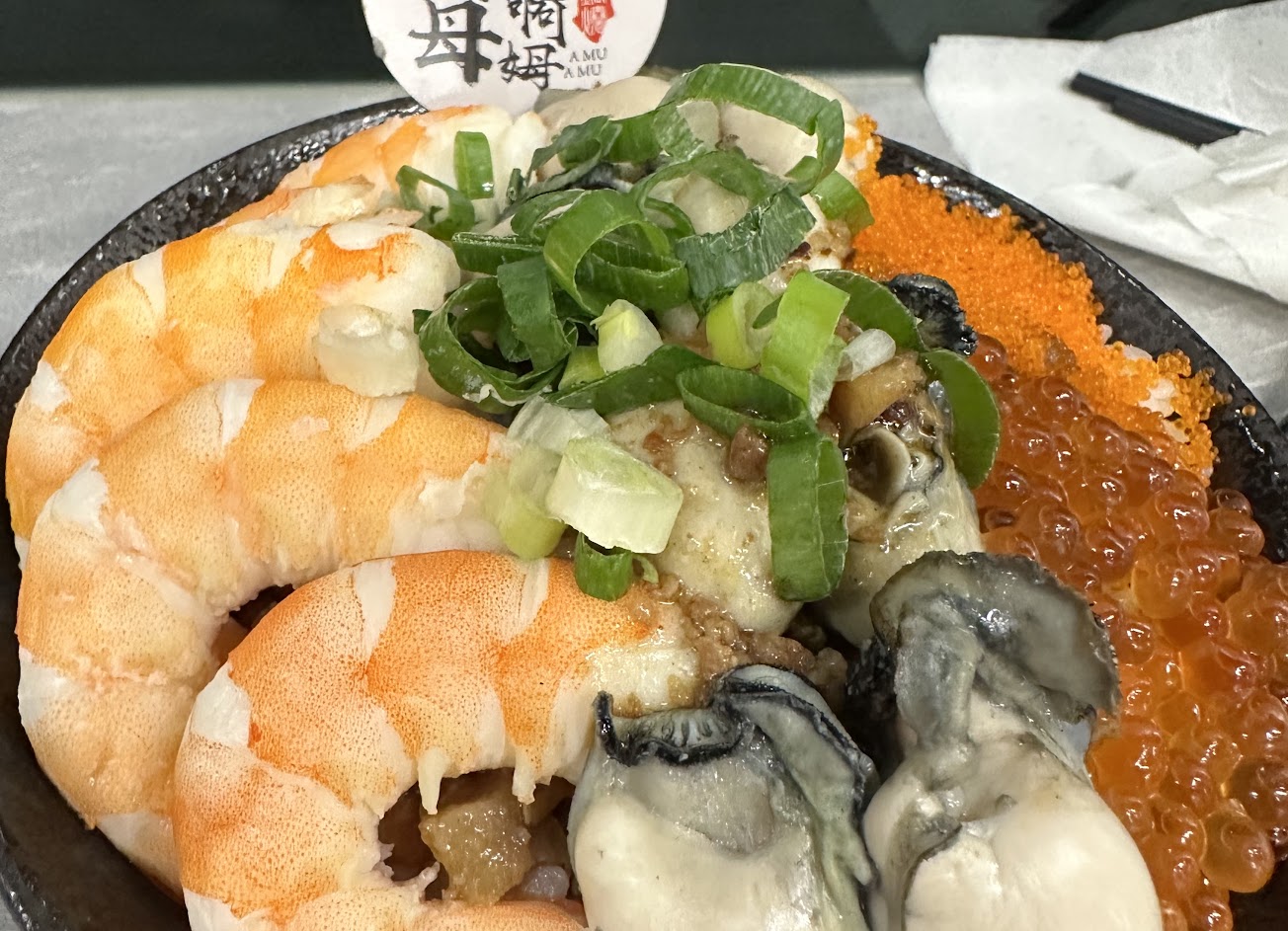 蝦子很Q彈脆脆的;連我最喜歡的鮮課蚵都肥美多汁;魚卵和蝦卵拌入滷肉飯之中,忍不住一口接著一口,一開始很好笑我還不知道…裡面長了肉燥飯,配起來真的蠻好吃的。