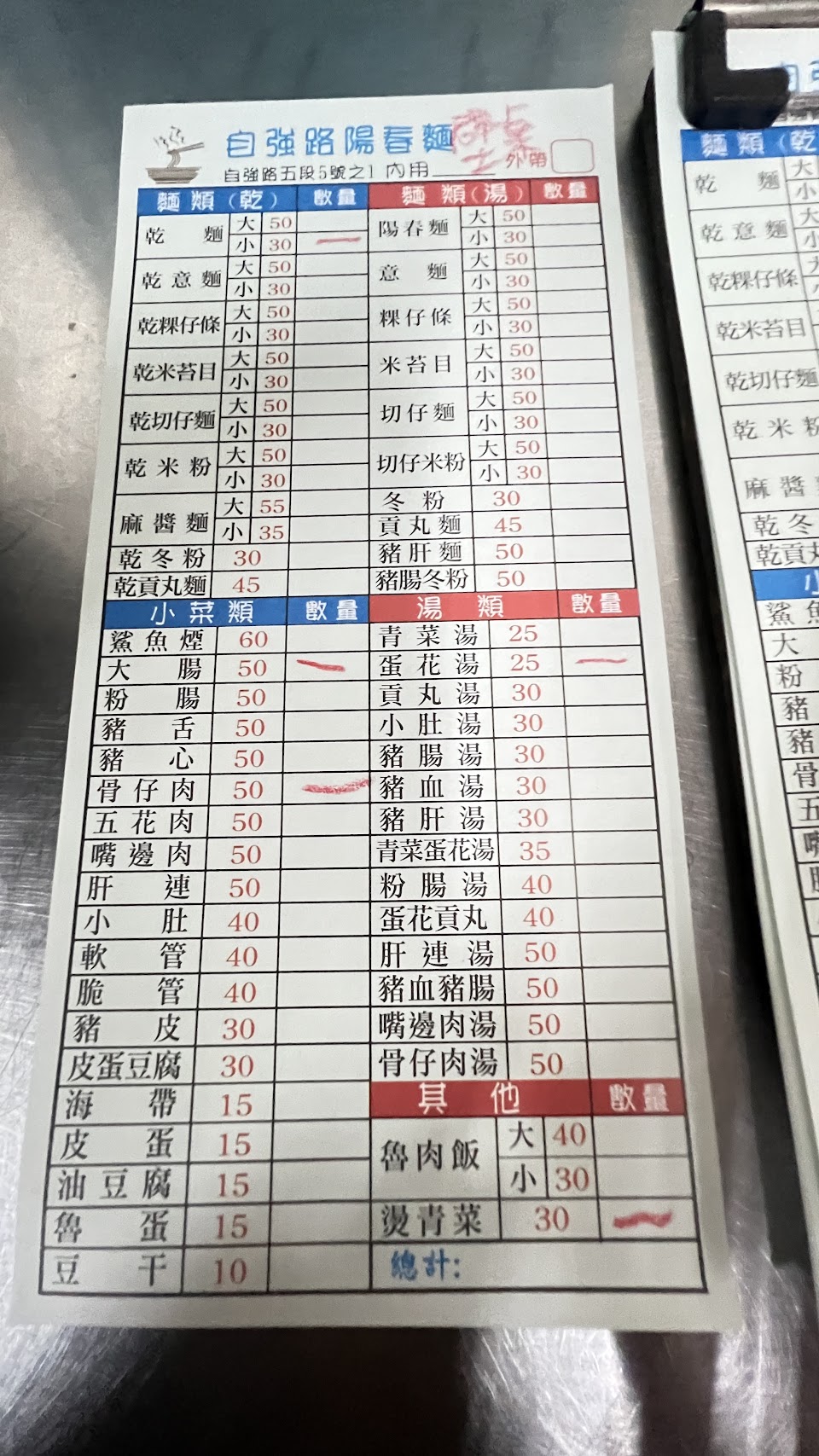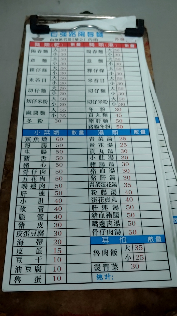 2024最新在地推薦餐廳的菜單_自強路陽春麵的菜單、圖片