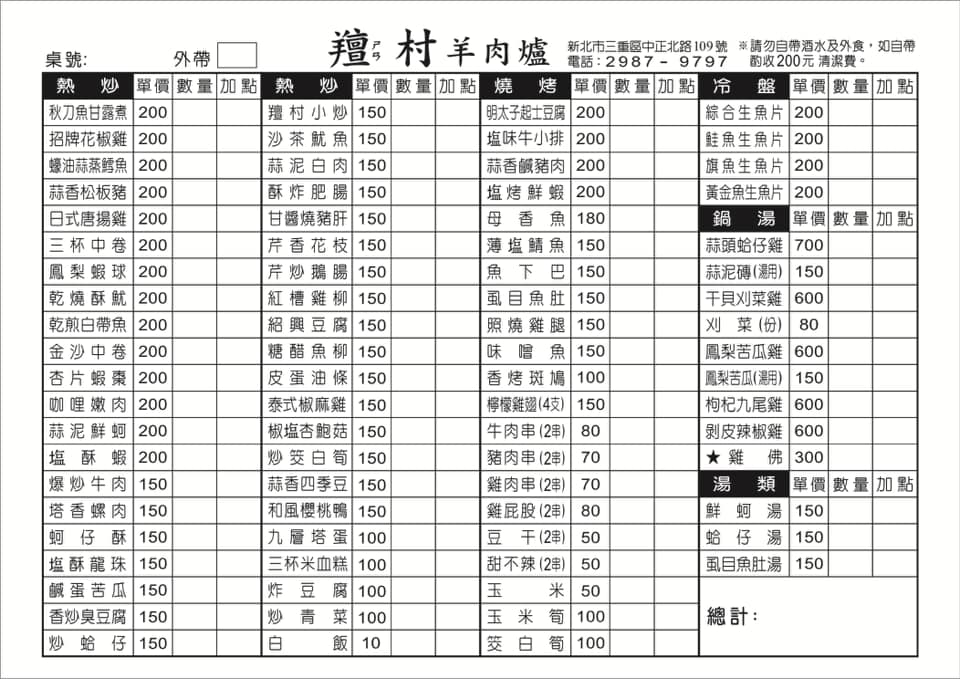 2024最新在地推薦餐廳的菜單_羶村羊肉爐的菜單、圖片