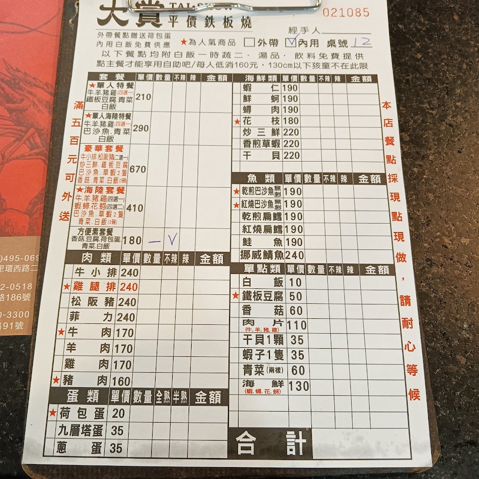 2024最新在地推薦餐廳的菜單_大賞平價鉄板燒三重重新店的菜單、圖片