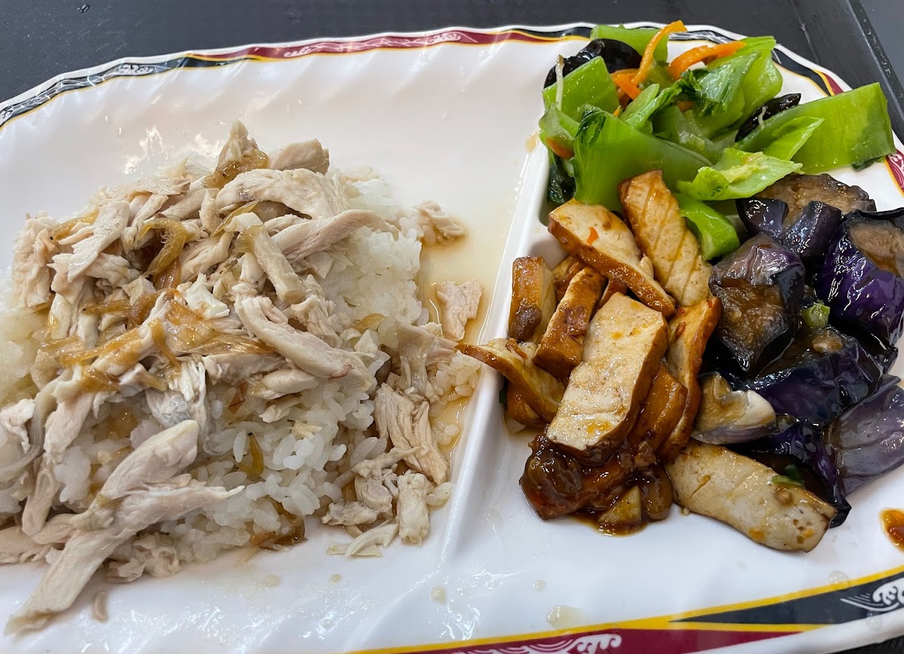 環境很乾淨,雞肉飯很好吃,還有很多種選擇小菜,魯豆腐,控肉,炒菜等等。