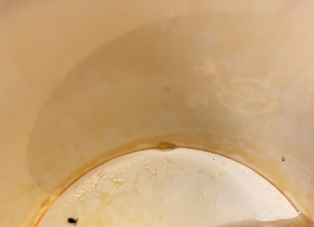 吃到最後剩下湯時發現有一隻蟲黏在碗底,不管怎麼搖晃碗,那隻蟲都不會動,簡直是奇蹟:)