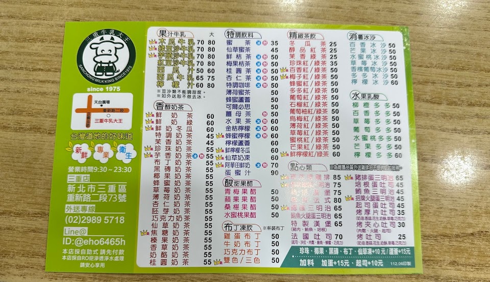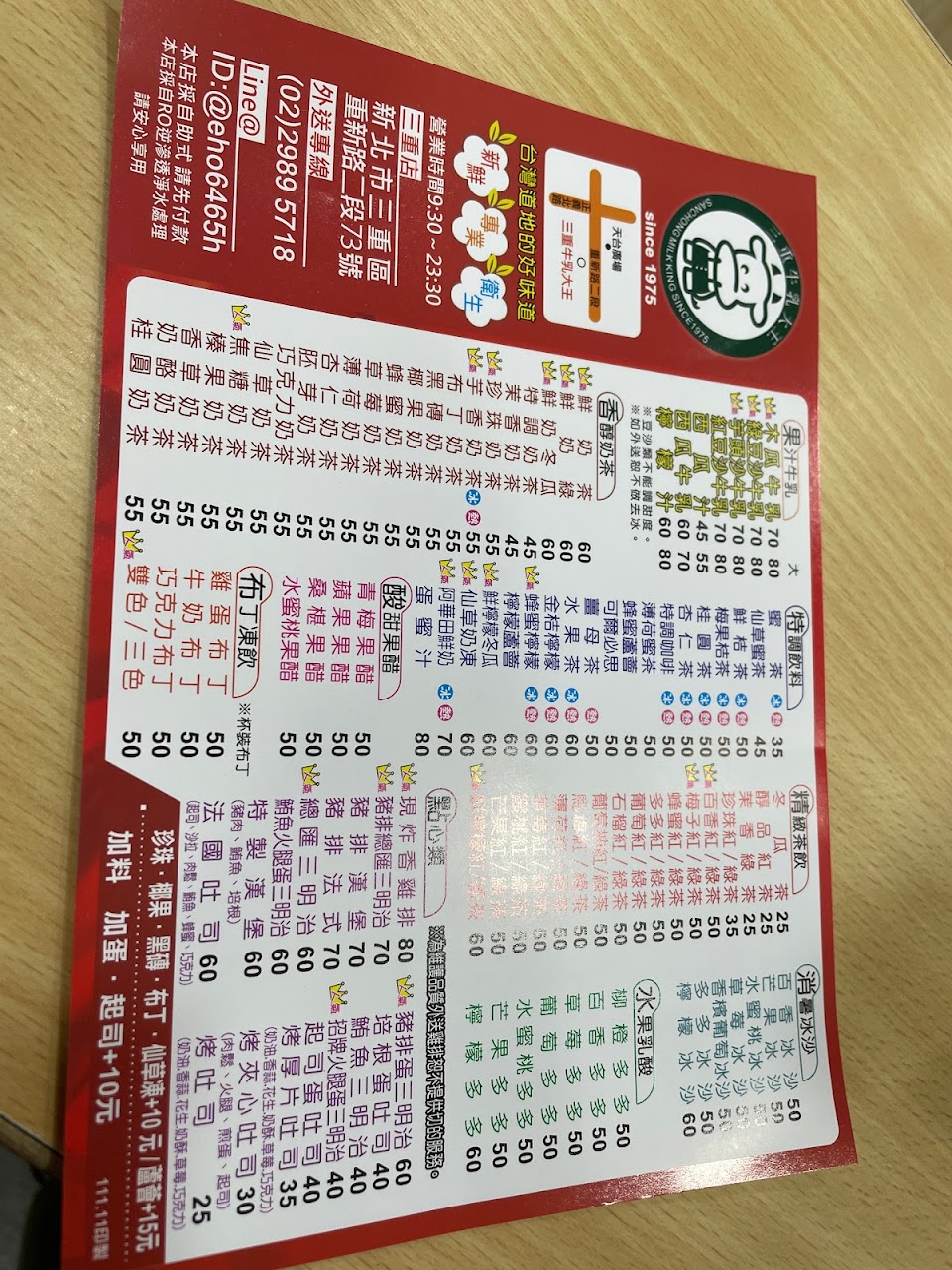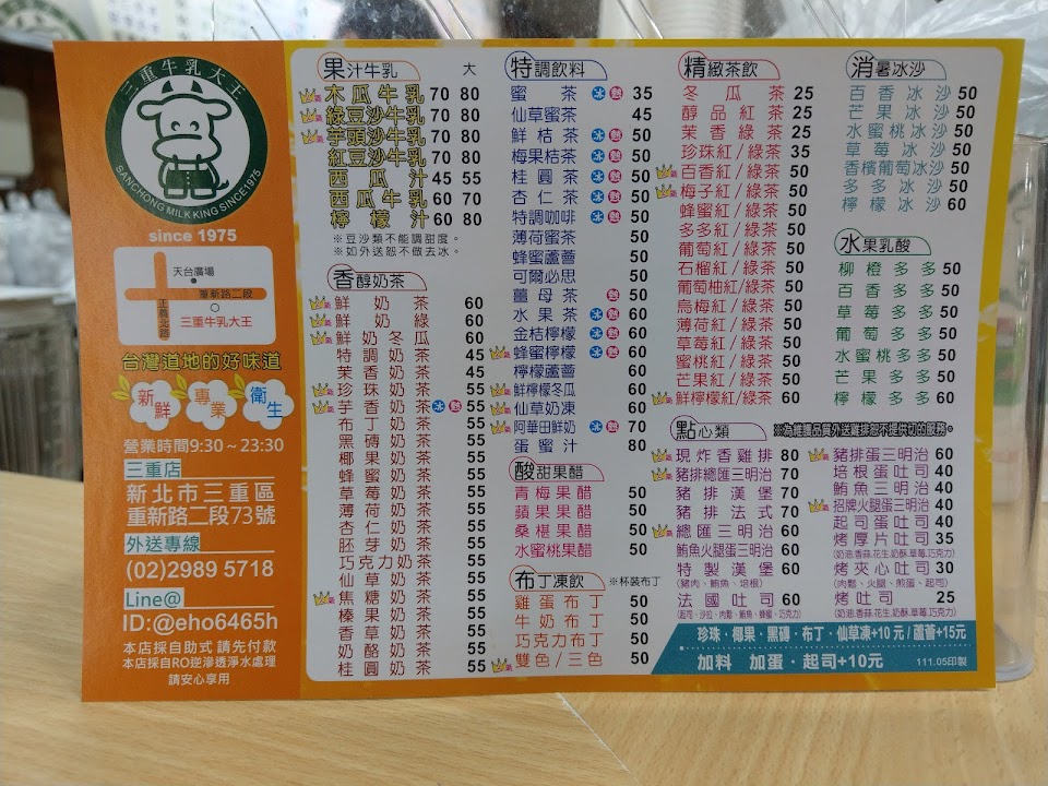 2024最新在地推薦餐廳的菜單_三重牛乳大王的菜單、圖片