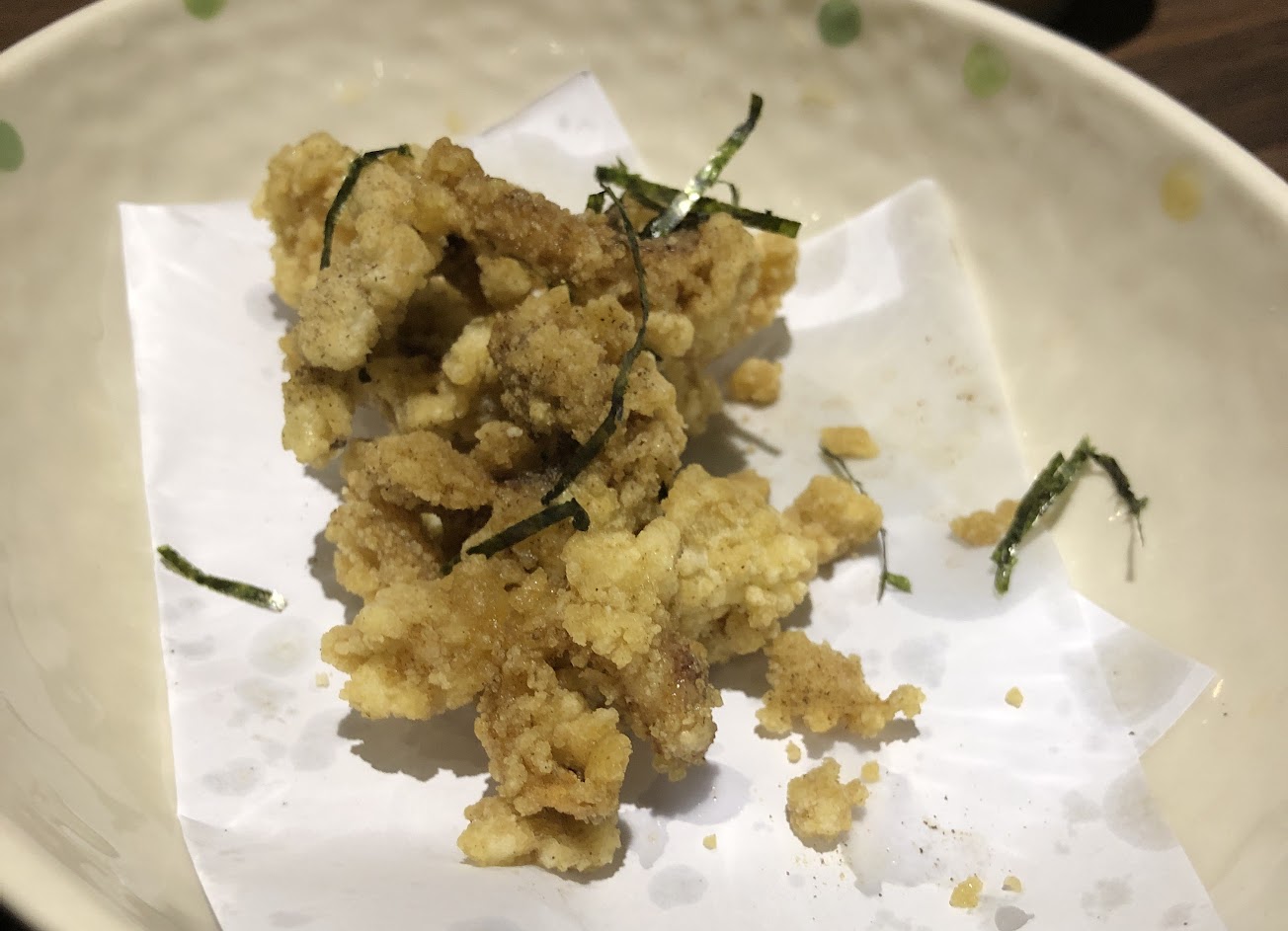 味噌豬肉有豬肉味,豆皮壽司的醋飯也還Ok,炸物有點像台式鹹酥雞的。空氣有著淡淡的芳香劑,令人不舒服。
