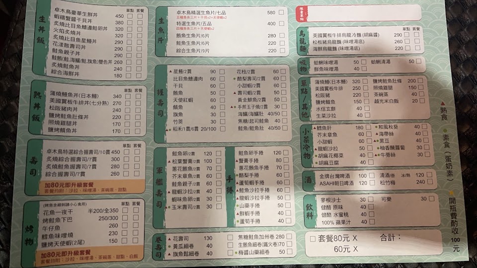 2024最新在地推薦餐廳的菜單_卓木鳥日式料理 三重店的菜單、圖片