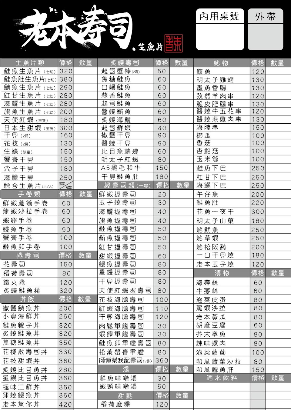 2024最新在地推薦餐廳的菜單_老本壽司.生魚片的菜單、圖片