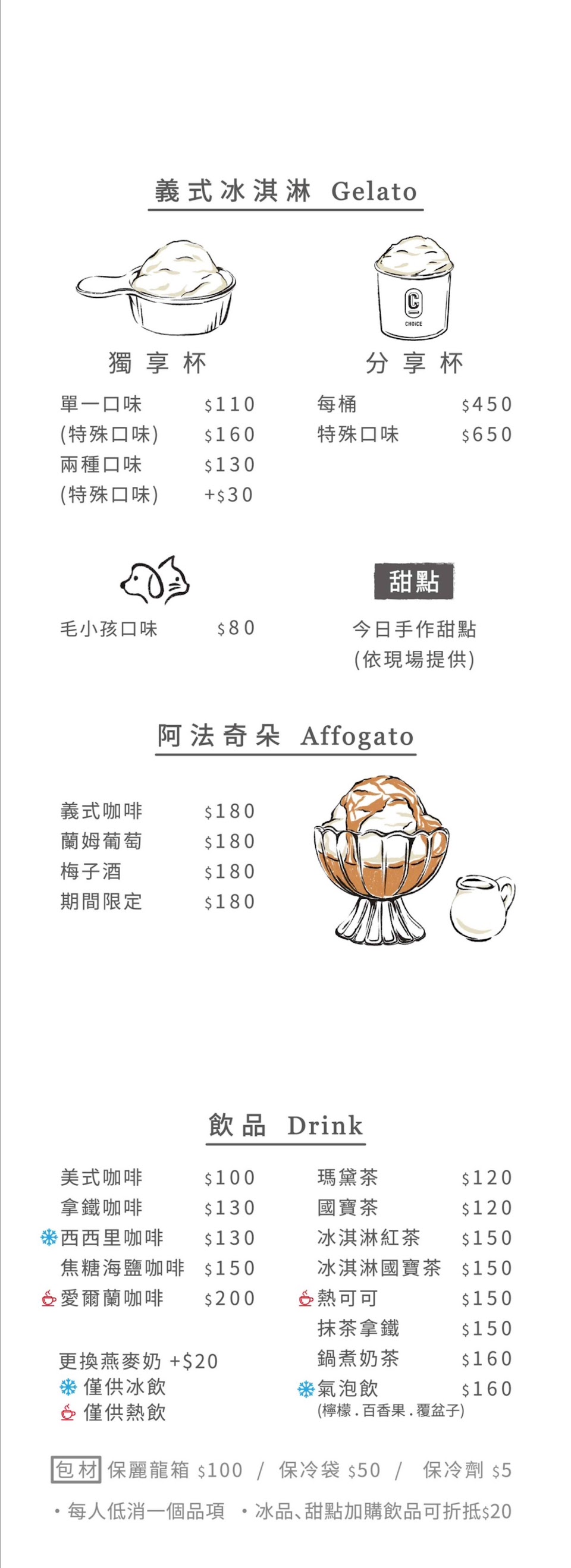 冰淇淋價錢區分80,100,120