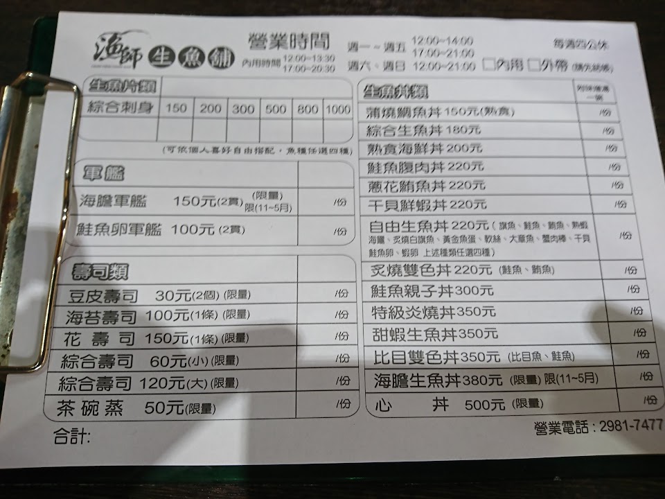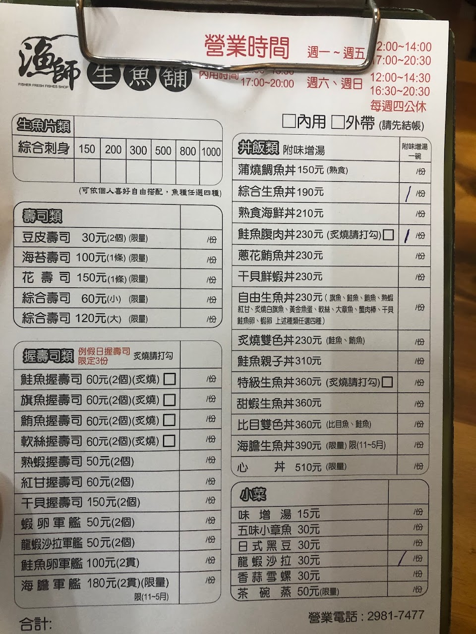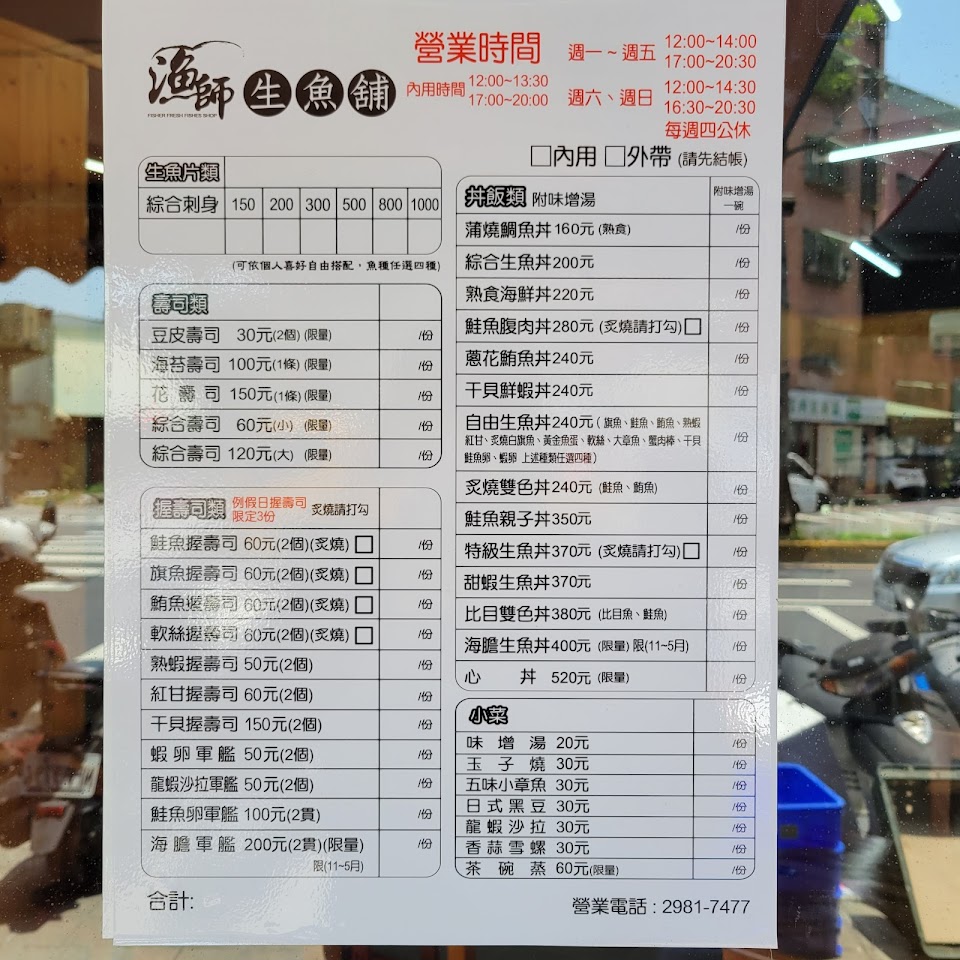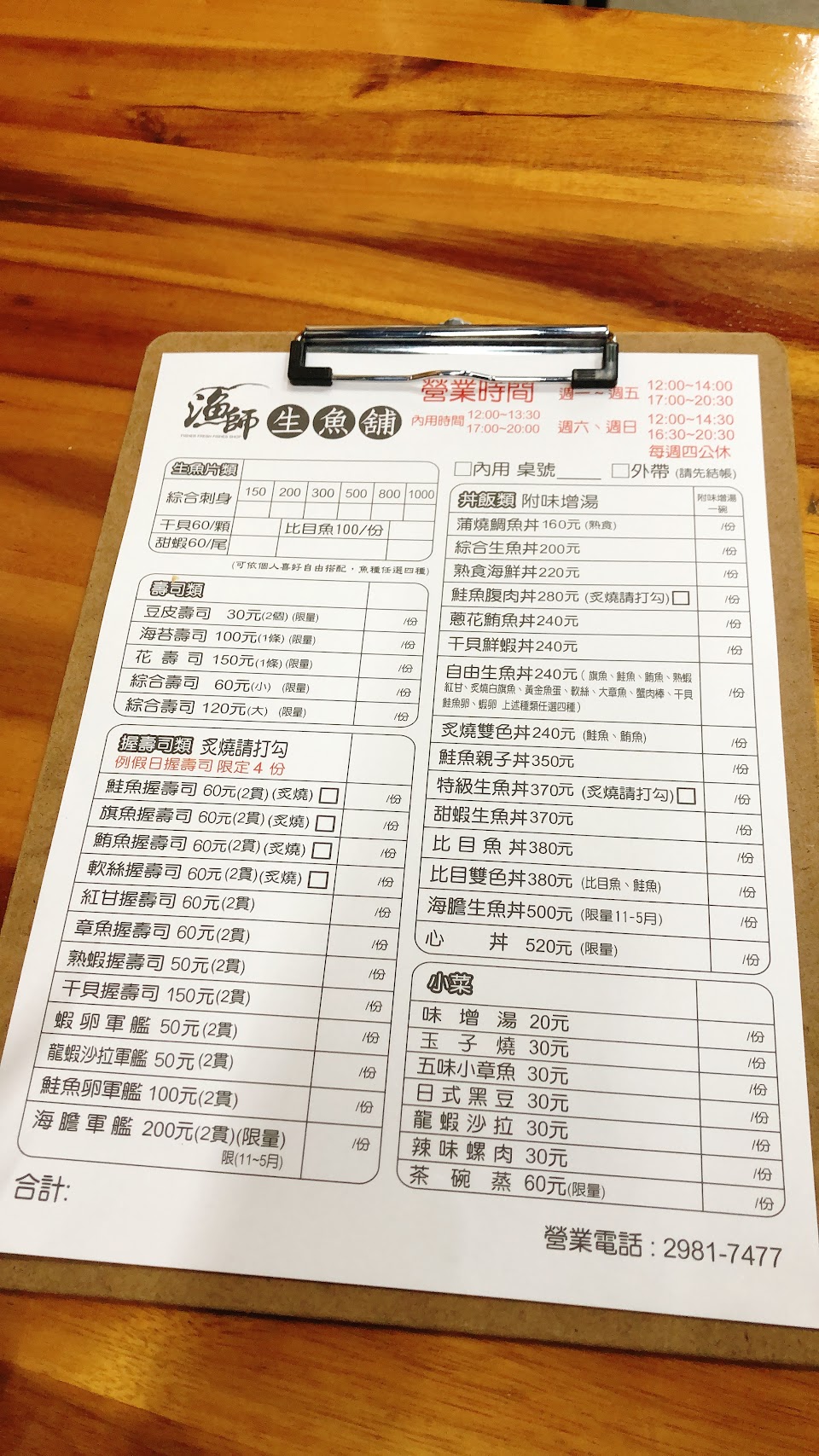 2024最新在地推薦餐廳的菜單_三重漁師生魚舖的菜單、圖片