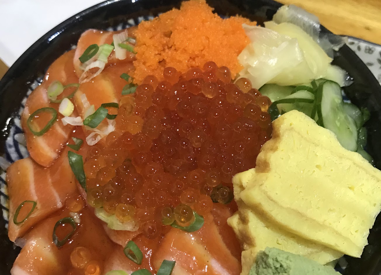新鮮的生魚片丼飯,生魚片配上醋飯真的是絕配,夏天吃上一碗真滿足。