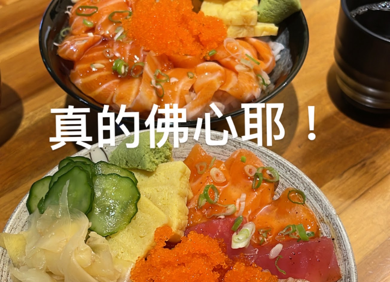 以丼飯上生魚片的份量來說真的是吃的飽死我? …