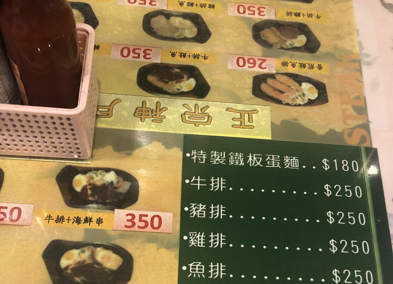 中高價位,外帶比較便宜,牛排、濃湯算不錯,有點像’我家牛排’的感覺,不過醬汁比’我家’讚,奶茶和紅茶有加分,用餐環境部分感覺店家在省營業成本,非用餐時段連吊扇都不開,吃到流汗