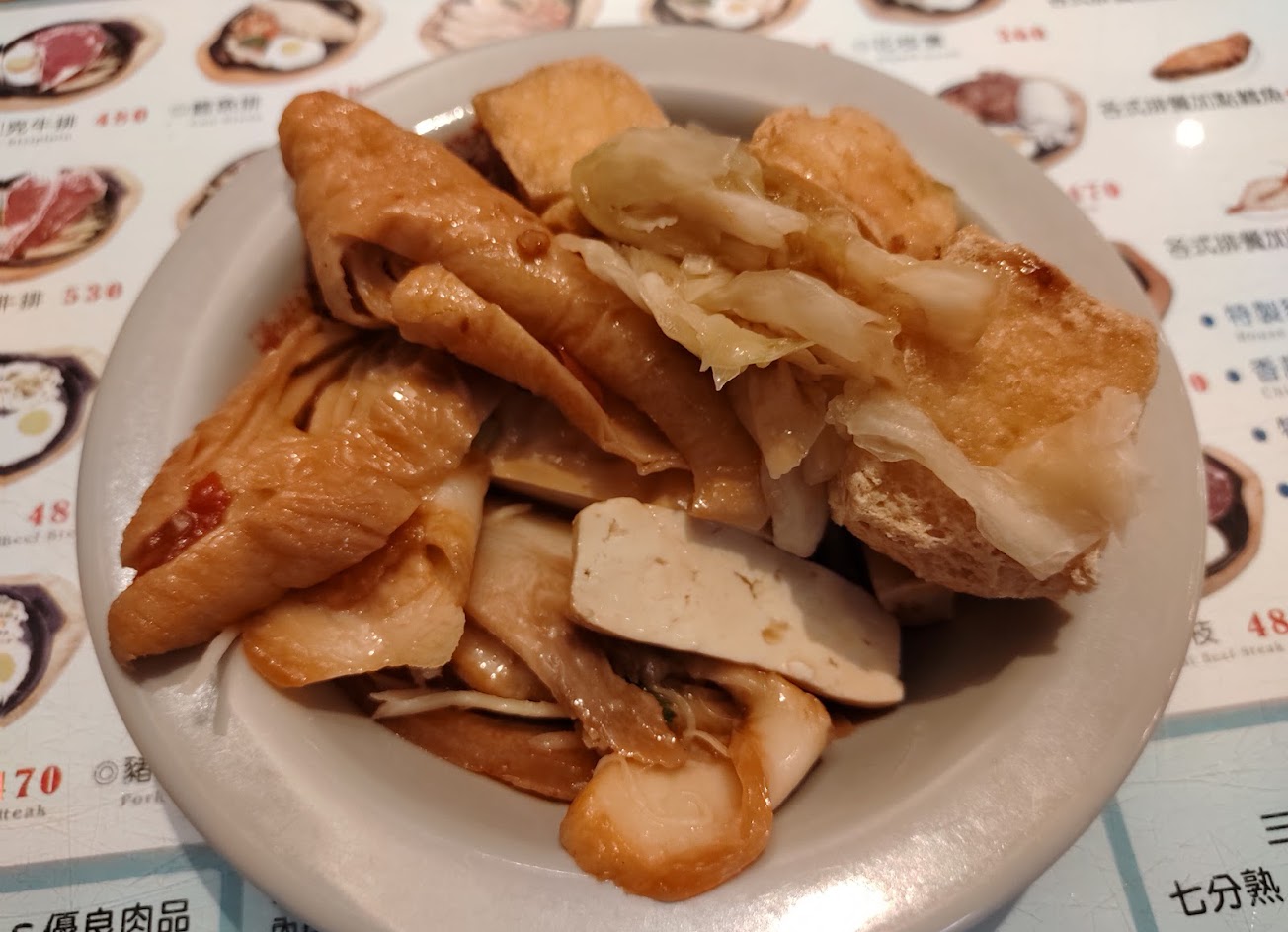 排餐本身的厚度和嚼勁都非常讚,旁邊的自助吧更是不得了,種類超多,有台式涼拌小菜、臭豆腐,熱食區還有炸物、絲瓜蛤蠣、豬腳、牛筋湯、泡菜鍋、海鮮鍋等,也可以自己煮滷味、麻辣燙!