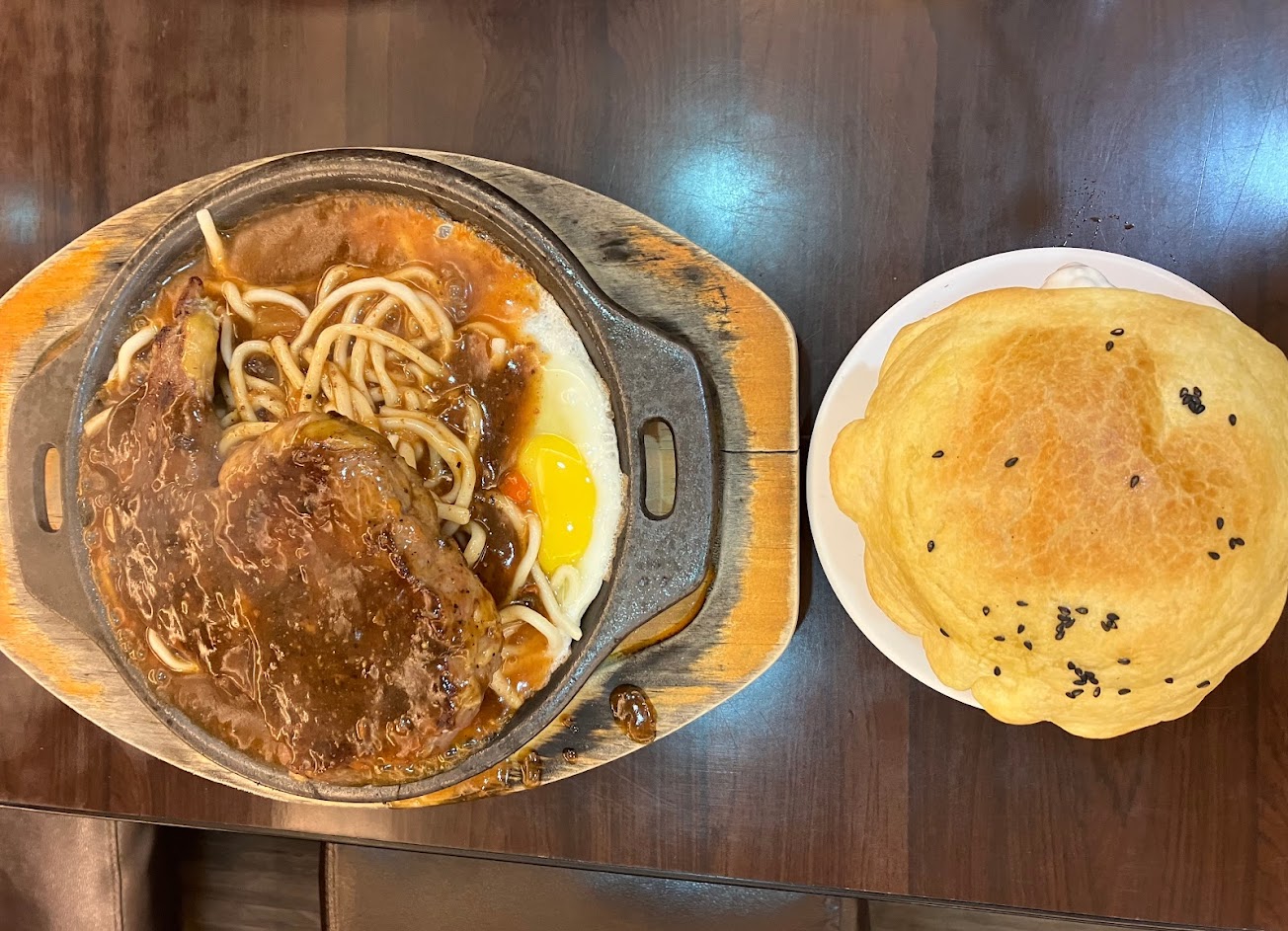 不過牛排筋不少,牛排刀切不太斷,如有經費,點250元厚切牛排,好吃很多!
