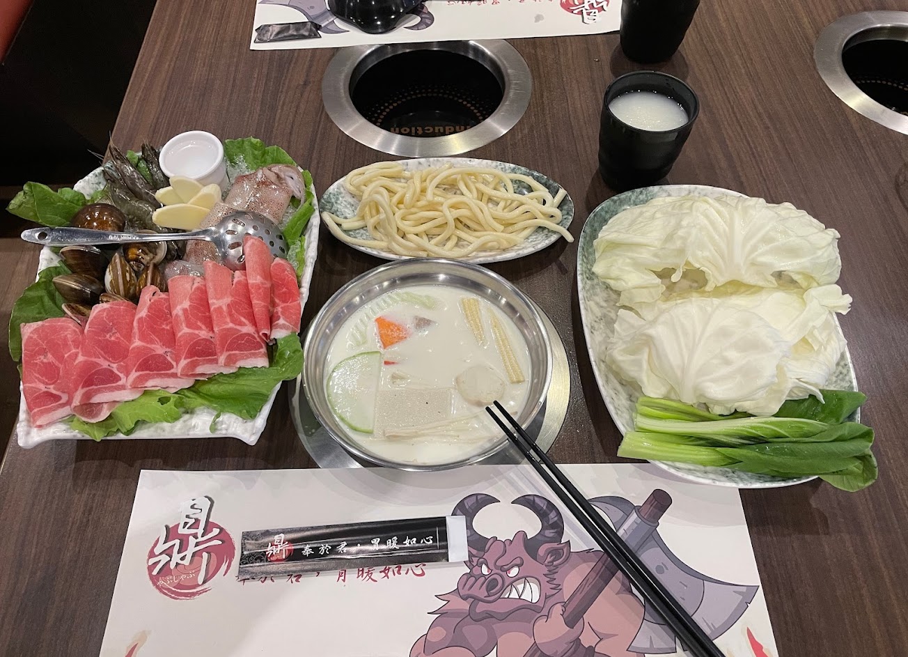 晚上快八點來還是高朋滿座,東西cp 值高,肉、海鮮有超級超級多選擇,不收服務費,牛奶鍋蠻濃的,蛤蜊很大顆,愛吃蛤蠣的真的要點!!!!!