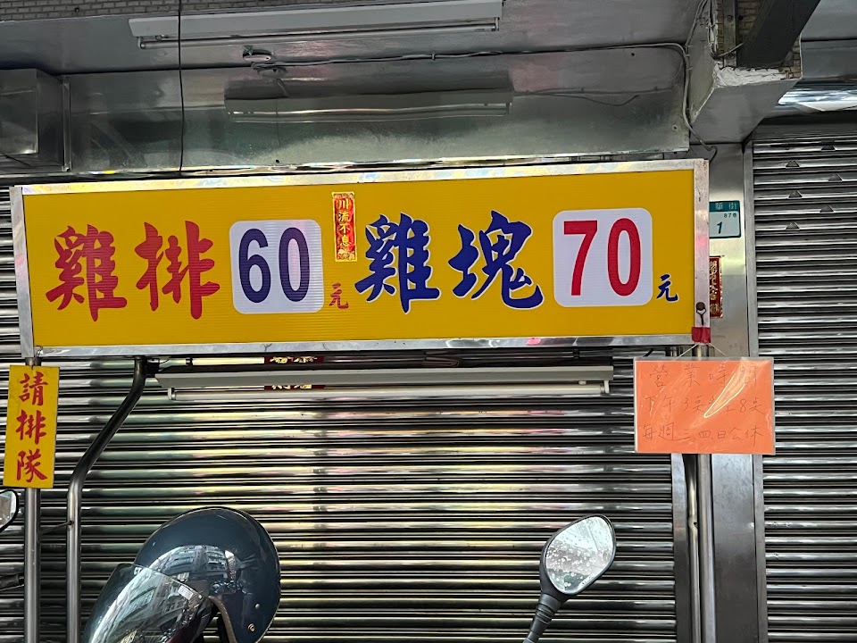 巷弄中美食只賣兩種雞排$60及雞塊$70,銅板價$70雞塊,份量多,古早味鹹甜而不膩味道很夠,肉軟嫩多汁不柴,炸皮薄沒有油耗味。人潮洛繹不絕,現場炸雞塊一上台,很快就會掃空。