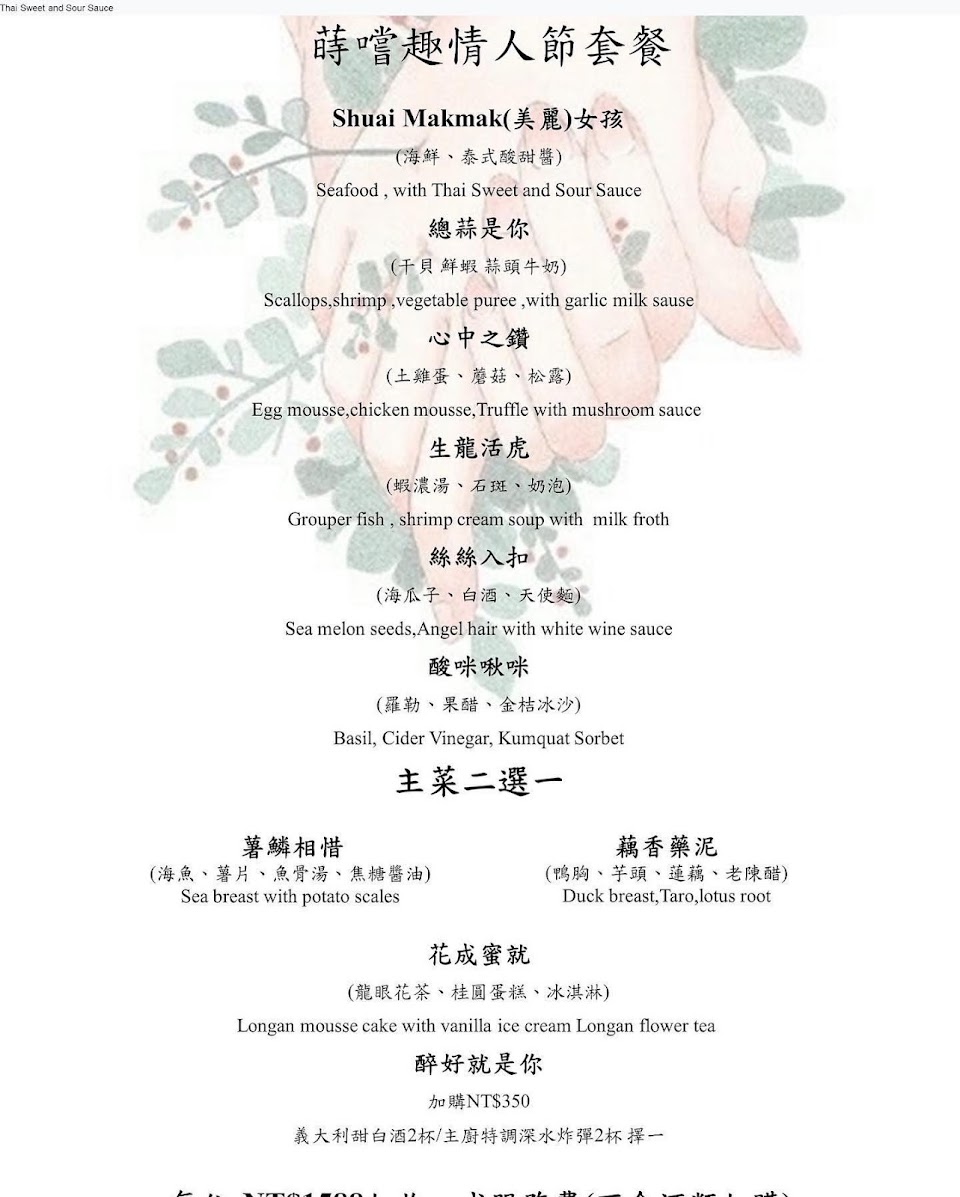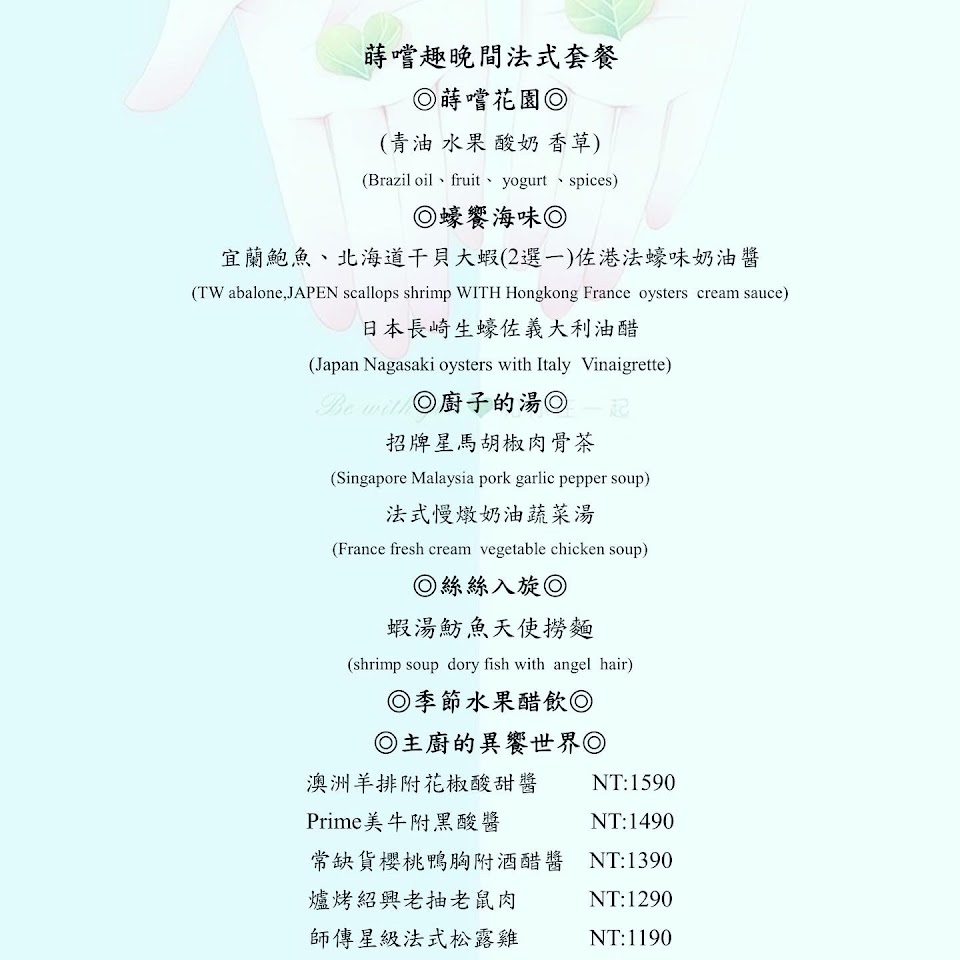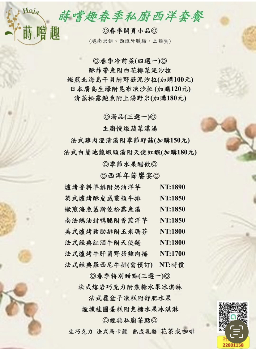 2024最新在地推薦餐廳的菜單_蒔嚐趣/Paulliao私廚/歐法料理/三重美食(提前一日預約制)的菜單、圖片