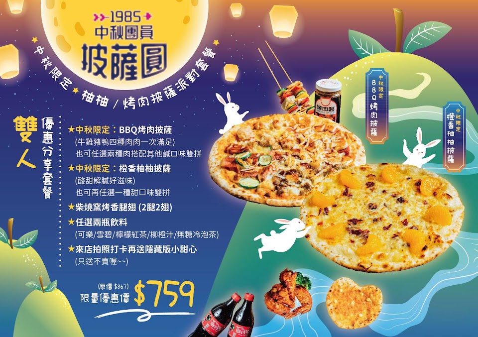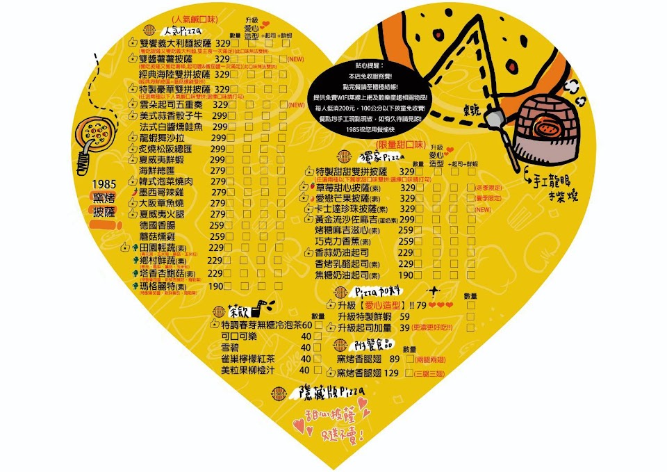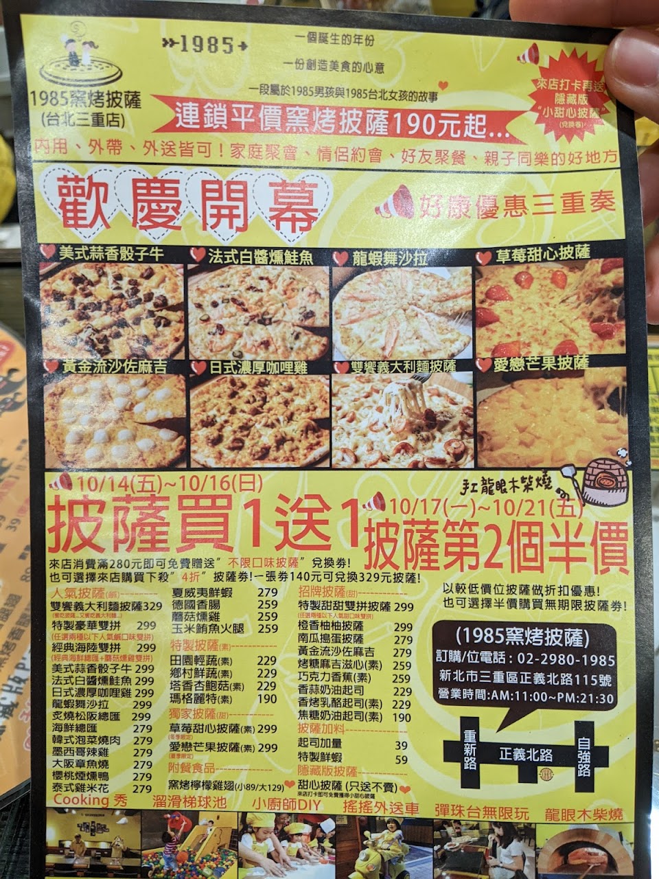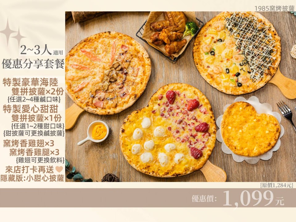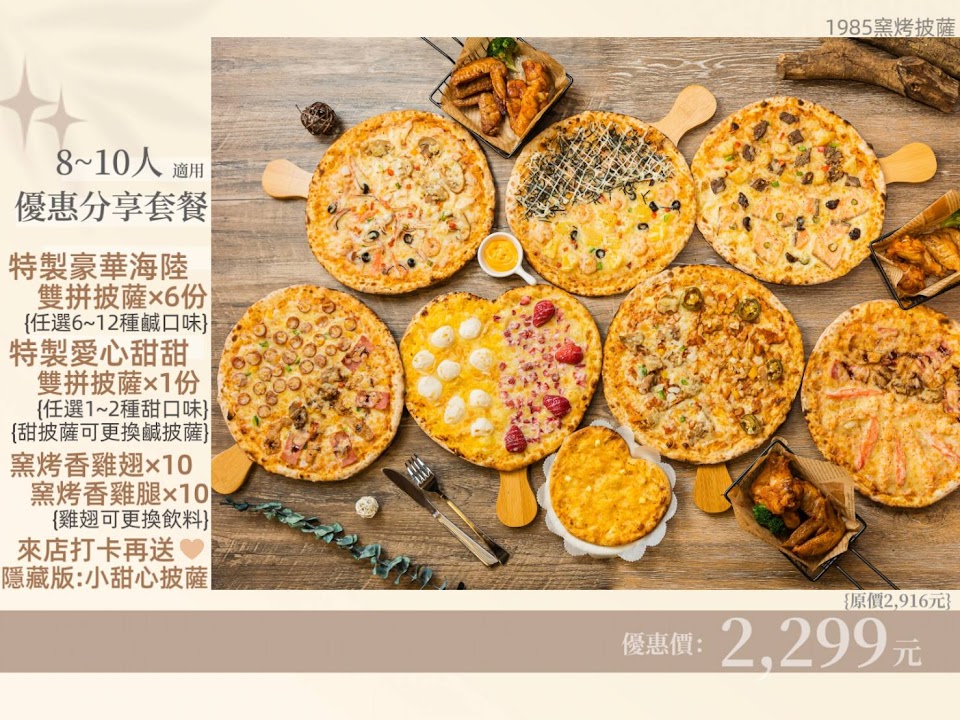 2024最新在地推薦餐廳的菜單_1985窯烤披薩(台北三重店) 親子餐廳/親子課程/慶生/抓週/猜性別/性別揭曉派對/派對Party/租借場地/包場/DIY手作披薩/PIZZA/的菜單、圖片