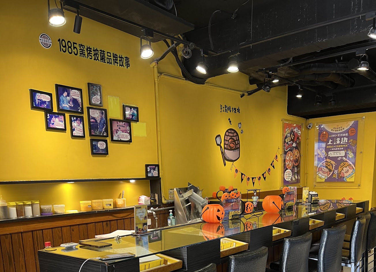 萬聖節帶兩隻搗蛋來吃披薩,店內設計很應景。