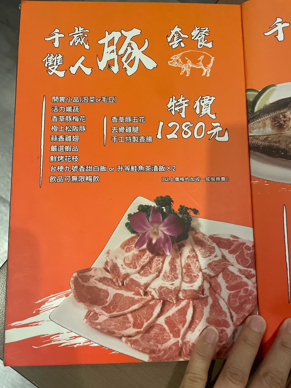 雙人牛套餐1480,加一成服務費約1600多