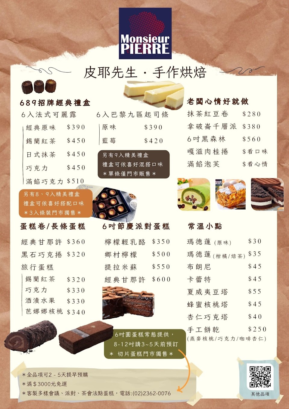 2024最新在地推薦餐廳的菜單_皮耶先生•手作烘焙 晴光店的菜單、圖片