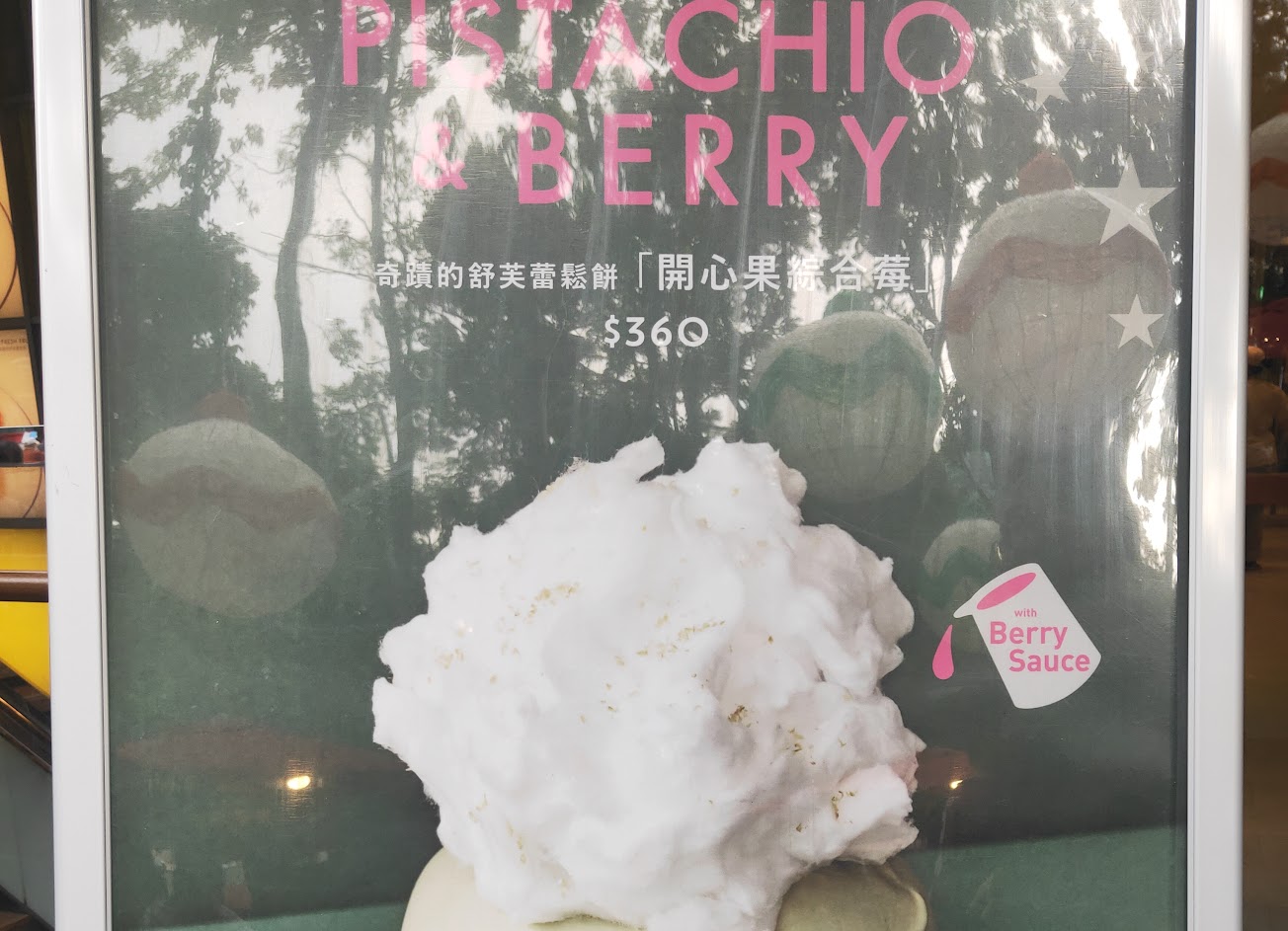 日本流行店,但人很多、賣點就大櫥窗內的舒芙蕾鬆餅,但要300元,其實貴