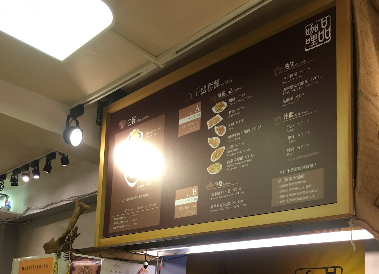 我得了一種看到錯字就不舒服的病,牆上菜單及紙本菜單上右下角的提醒事項是想說「請『至』櫃檯」嗎⋯還是我太餓眼睛花了以為看到誤植錯別字