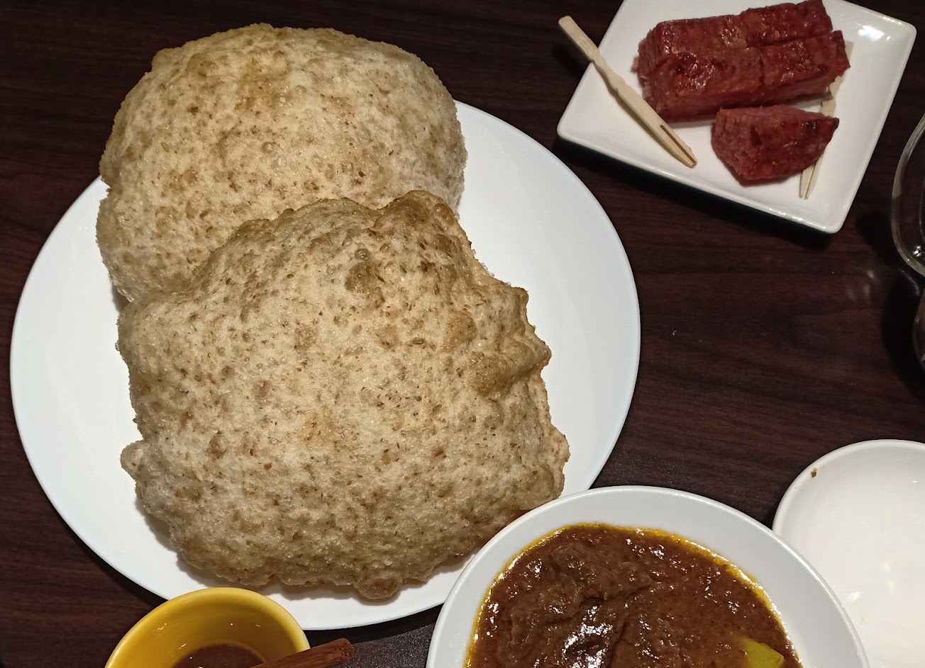 印度餅 圓胖狀的餅,很有特色 吃的出麥香味,不少人說很油 跟同行友人分著吃就好 沾著羅旺子醬、咖哩