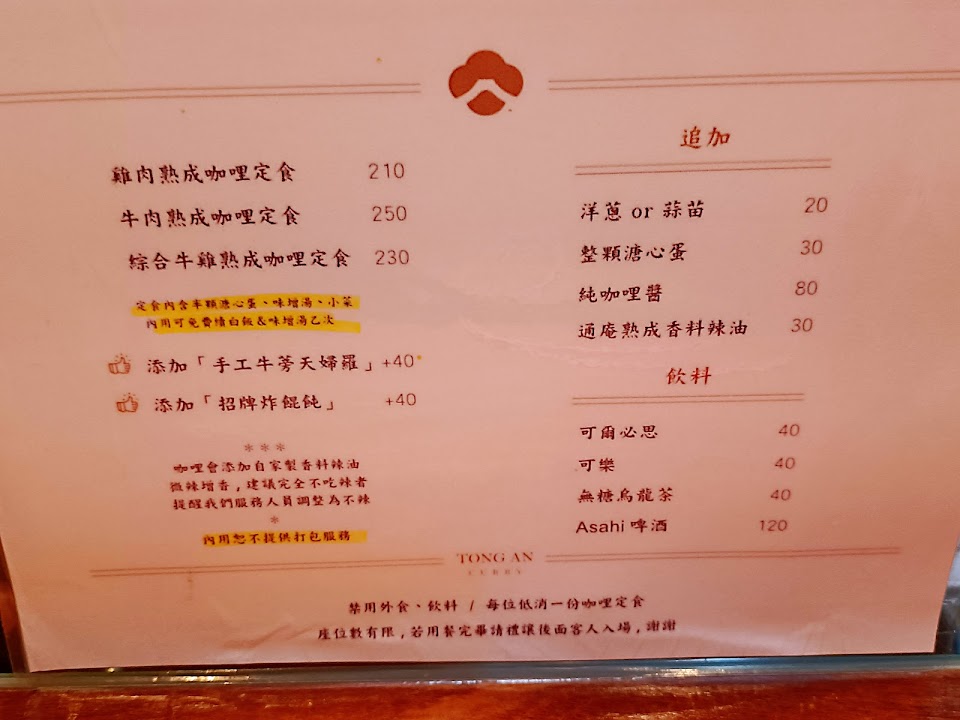 之前都是內用 今天第一次外帶其實有點擔心會不會風味上有差 但事實證明多慮了 外帶回家依然好吃!! 店員的服務態度也很好 之前的幾次內用體驗也都很喜歡 很開心通庵開到中永和來~ 畢竟這附近咖哩飯少之又少 真的稱得上好吃的也幾乎沒有 之後一定還是會繼續支持的! 服務 外帶 餐點類型 午餐 平均每人消費金額 $1-200