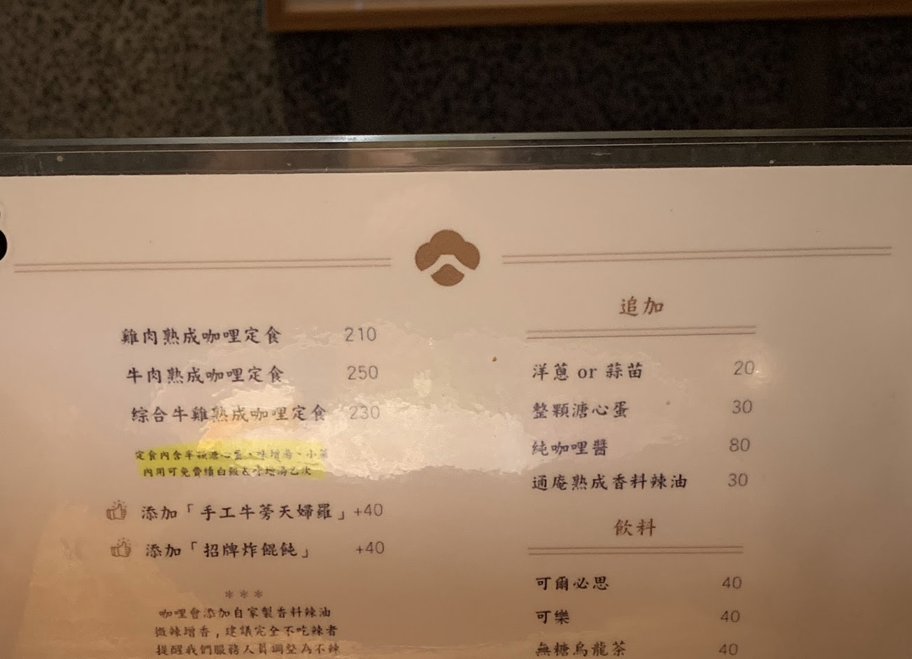 ⭐️My google reviews: 4.1 stars . 今天要吃的這間是最近突然火起來的咖哩, 甚至說可以挑戰台北最好吃咖哩, 因為每間分店座位都少的可憐, 而且又不能訂位, 為了避免排隊排到死, 所以就挑了間座位稍微多幾個的中和分店來吃, 排隊大約等30分鐘入座, 而且太晚來會賣完, 有點搞飢餓行銷的感覺 . 現在什麼東西都要跟熟成扯上關係, 連咖哩也要來湊一腳, 官網說是用13種以上的香料完美比例混合, 經過繁瑣的工法製成香料咖哩粉, 放個28天, 再把這個粉加到長時間燉煮的多種蔬菜水果內,熬成醬, 最後還要再冷藏熟成個48小時才算完成, 就是說你現在要吃的這碗咖哩, 已經放超過1個月拉, 說的一嘴好咖哩, 就讓我們吃吃看如何 . 每個座位上都有黃光Spotlight打在食物上, 讓食物看起來更令人垂涎欲滴, 要拍照光源也比較足, ?牛肉熟成咖哩定食?, 第2張圖,250元, ?雞肉熟成咖哩定食?, (很像賽的圖已移除),210元, 如果一次想吃兩種肉, 也有牛雞混合的選項可選, 越光米粒分明Q彈沒沒問題, 白飯可以免費續一次, 附一碗味增湯, 也是免費續一次, 溫泉蛋比較特別是用炸出來的, 表皮的口感比較不一樣, 而且也較易吸附咖哩醬, 雞肉就雞腿肉,嫩度沒毛病, 牛肉帶腱則是燉的軟爛, 口感吃起來也還行 . 咖哩醬default會加入店家祕製大紅袍花椒辣油, 如果不吃辣的話要跟先跟店家講, 現在也是什麼東西都要跟麻辣扯上關係, 這辣椒油小辣,帶麻, 麻辣口味的咖哩飯, 這個創新也算是這家店能崛起的原因之一了, 我個人對這樣的口味搭配是不排斥拉, 喜歡麻辣的朋友可以來試試看對不對味, 阿咖哩醬屬於特別濃稠的那種, 呈現膏狀, 我個人也不是很喜歡湯湯水水那種咖哩醬, 湯湯水水還不如去吃湯咖哩, 然後這個所謂的熟成咖哩醬, 果香特別濃烈, 應該是我吃過最濃的, 微甜加上微果酸, 確實滿厲害, 然後有附醃白蘿蔔片, 讓你搭配特濃咖哩解膩清爽一下的 . 加點了一份 ?招牌炸餛飩, 第3張圖,加40元, 2顆而已,頗貴, 但是酥脆鮮香不油膩, 不錯吃, 可以加點, 難得有這種加點的附餐我會覺得夠好吃可加點的 . ?總結, 每個人低消一份咖哩定食, 內用不提供打包服務, 排隊要人到齊後才能入座, 然後用餐時間只有40分鐘, 雖然說咖哩醬淋上去馬上就上菜了,但還是有點短, 今天?2個人大約吃500元左右, 最近因為物價齊漲,這間也跟著漲價, 但好像以新竹的物價來看也還好, 沒有特別貴, 傻傻的,還不趕快來新竹開一間, 咖哩定食一份的量男生可能會有點吃不飽, 建議續飯或加點其他配菜, 雖然主菜選擇比較少, 但這間咖哩有我吃過咖哩的前3名, 推薦 . 更多精準中立的美食評論在 IG: tedchen5152 #工程師Ted吃美食新北