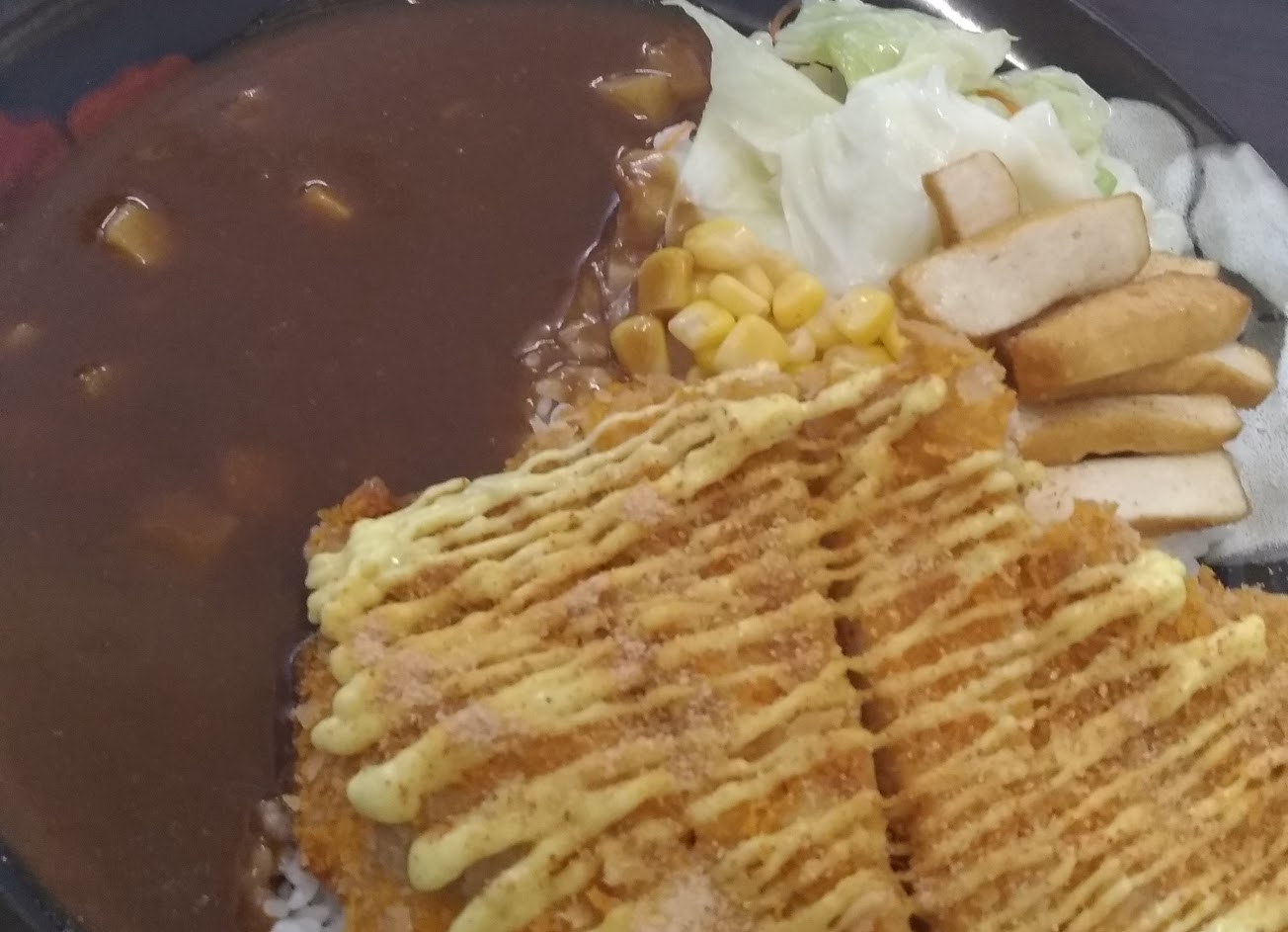 咖哩醬的味道還好,配菜也偏向台式便當感覺,不過可以加飯、加咖哩醬一次,對於食量大的人來說,是個不錯的福音