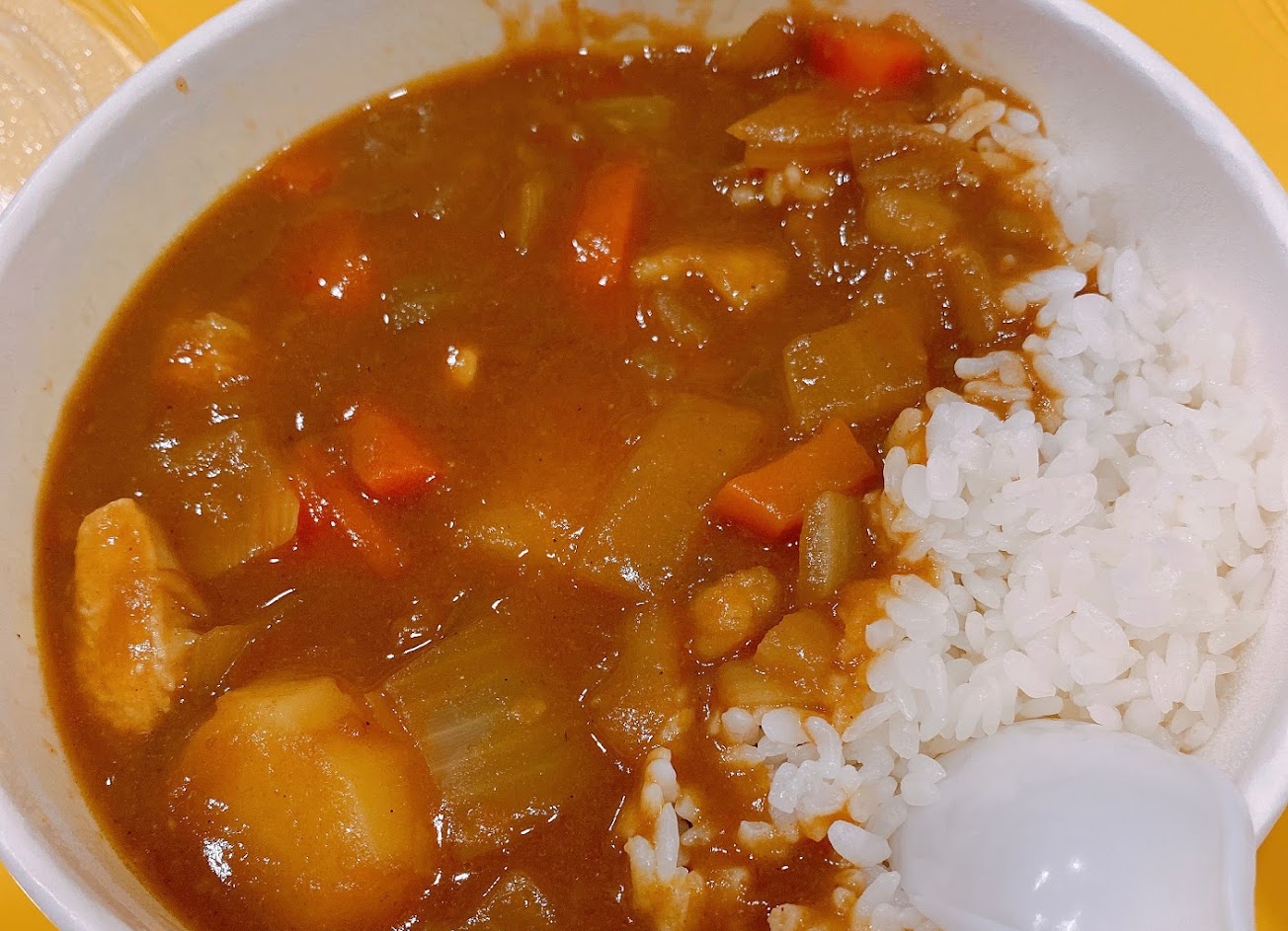 剛剛買的 不知道是不是快打烊 飯太黏結整球 加上咖哩不夠熱 導致結整球的飯很難跟咖哩伴均勻