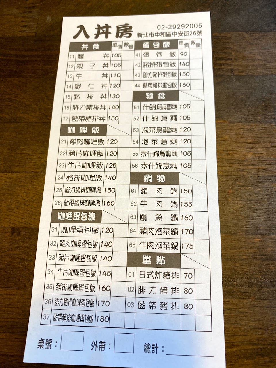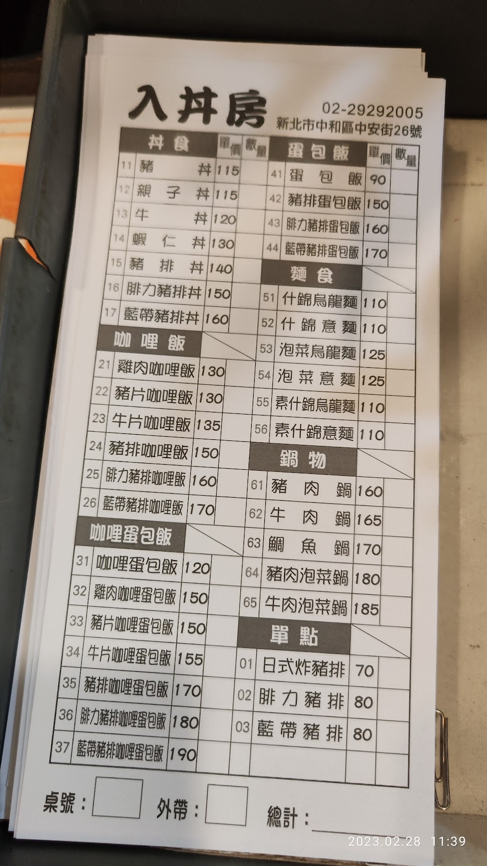 2024最新在地推薦餐廳的菜單_入丼房的菜單、圖片