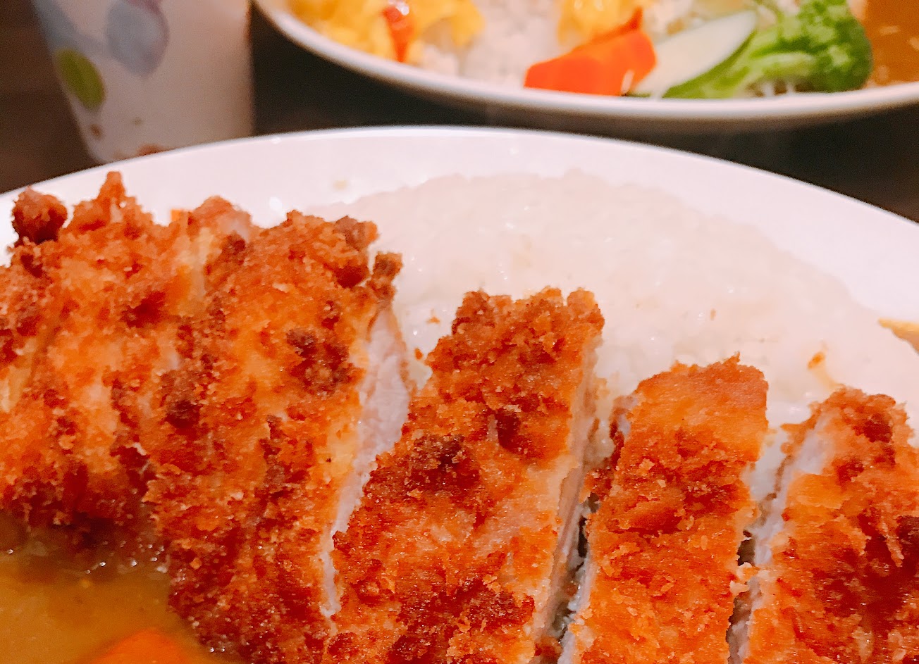 咖喱裡的紅蘿蔔還有豬排都好硬不好咬= =