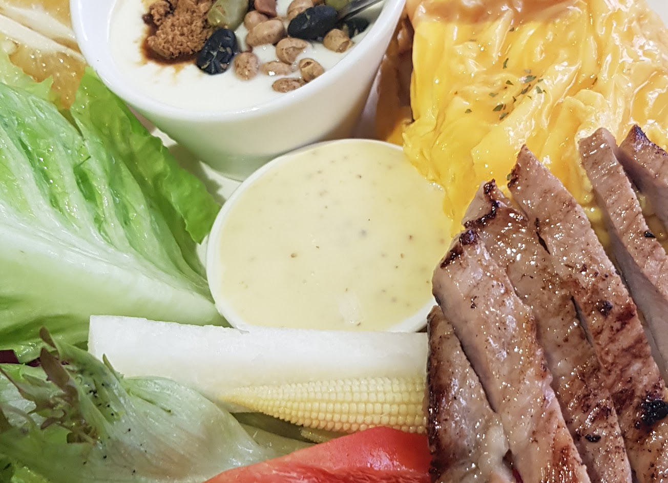 主食附新鮮自然的生菜沙拉及優格