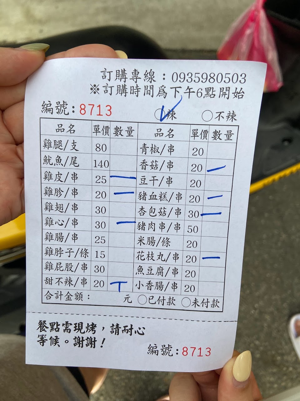 看臉書上的價格點餐(自己已先算過總共費用),電話中想跟老闆再次確認共多少錢,結果老闆說過來再說