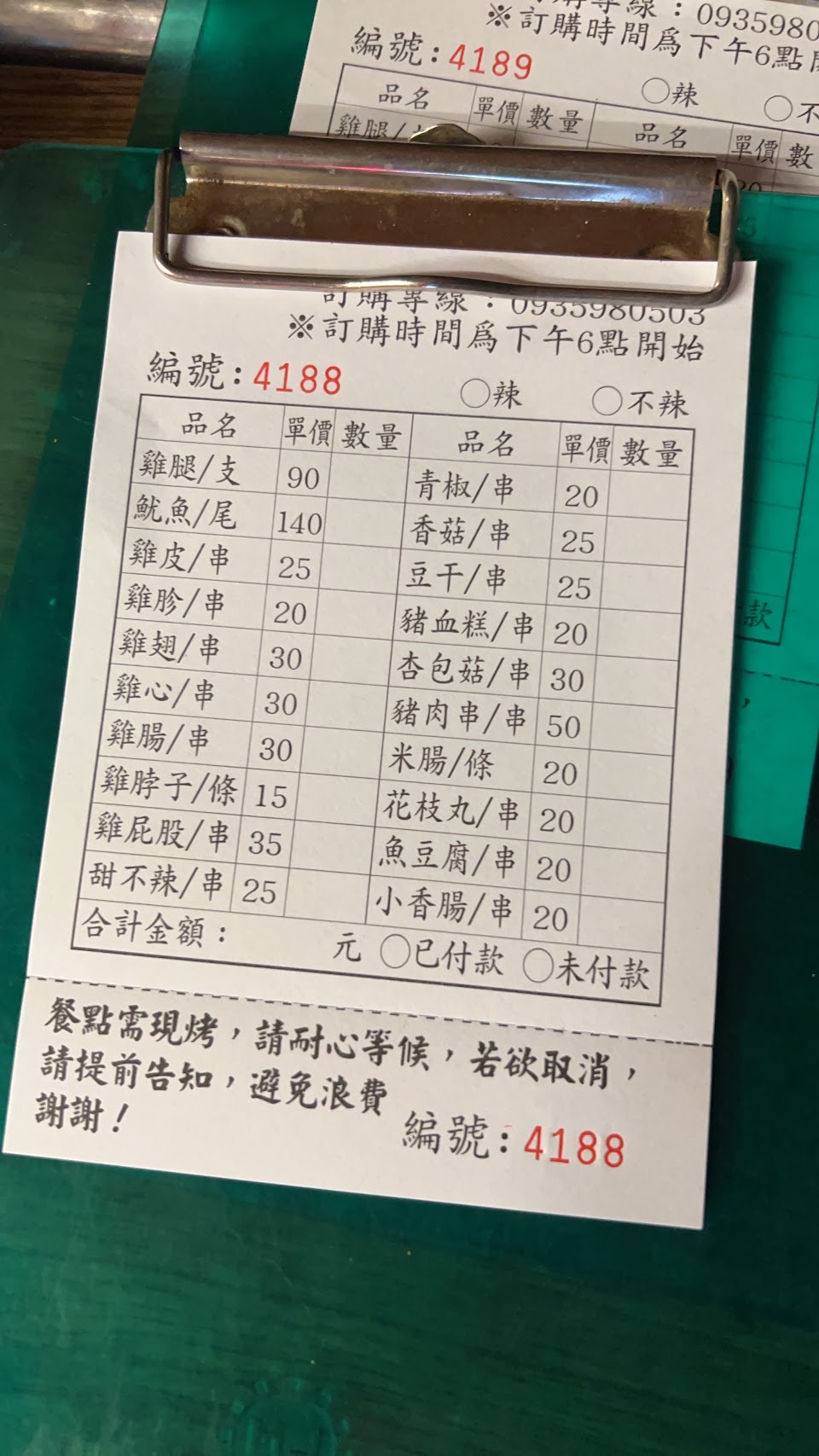 晚餐時段18點營業,可17點多先去劃單,老闆娘會告知幾點取餐,取餐時再結帳。