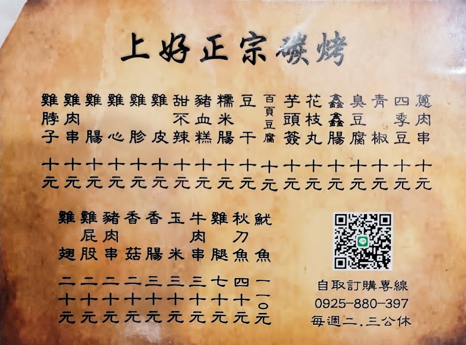 2024最新在地推薦餐廳的菜單_上好10元碳烤的菜單、圖片