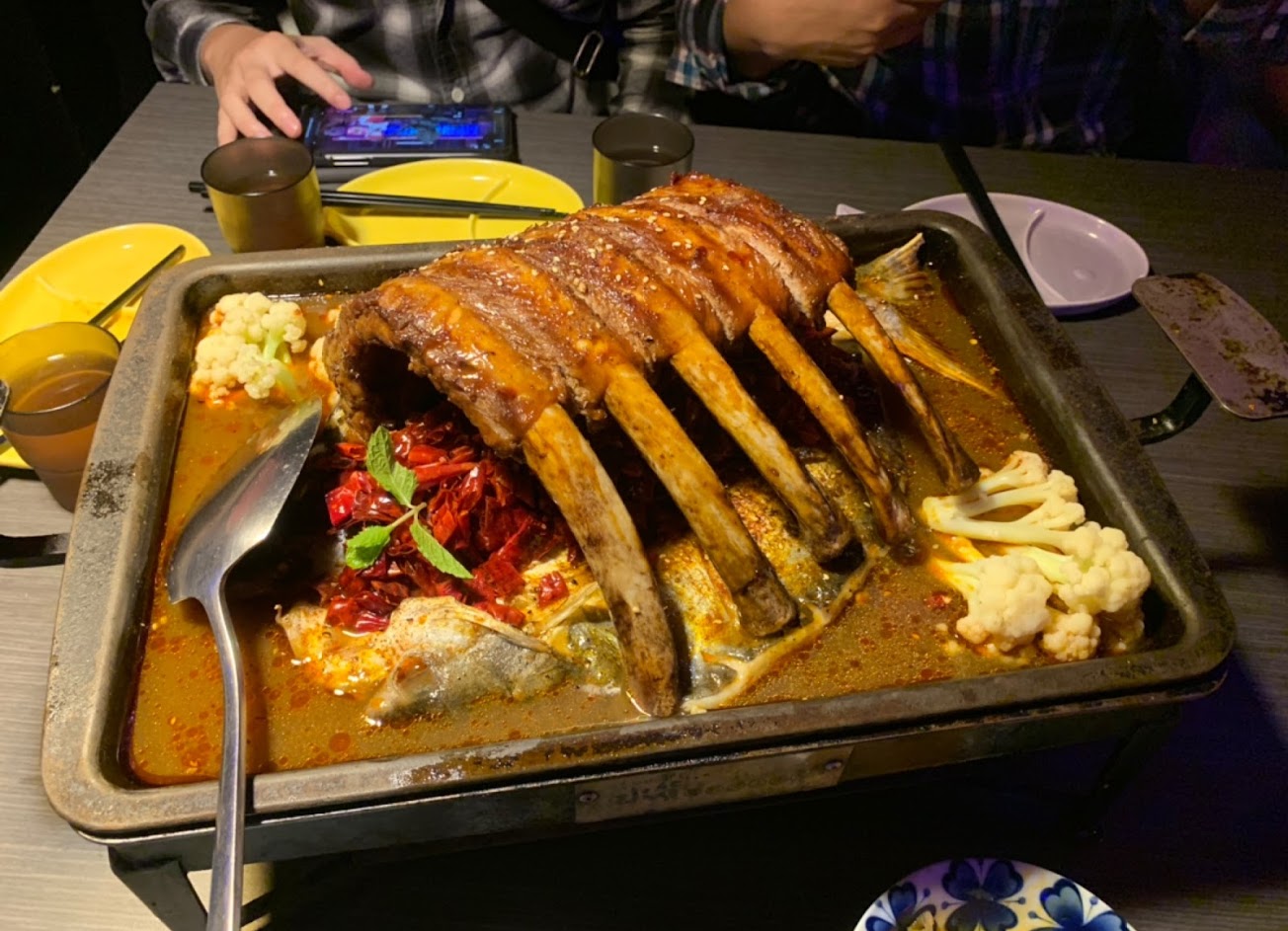 很特別的熊掌烤魚 座位寬敞 但鴨血不夠入味 烤魚有辣但不夠麻 香